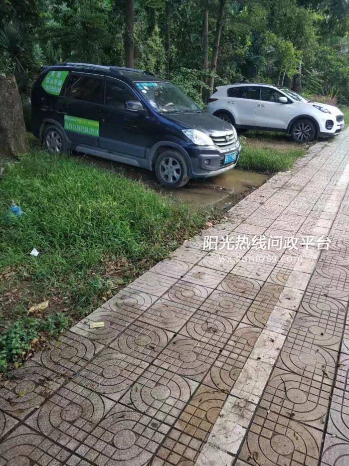 位于麻涌碧水湾靠近麻涌大道路段,有一处草坪经常被乱停车,车辆经常是横放在人行道上,长期碾压草坪,目前该草坪已被破坏。目测,该位置应不属于停车位,是人行道范围,建议相关部门及时处理。