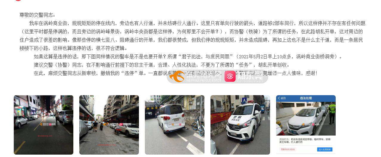 前不久,我车在涡岭在停的规规矩矩的前提下,被贴罚单,投诉建议取消我的罚单,给的回复简直不合逻辑。你们警车违停就说执行任务,老百姓临时停几分钟,而且并未阻碍其他车辆通行,竟然就开罚单。