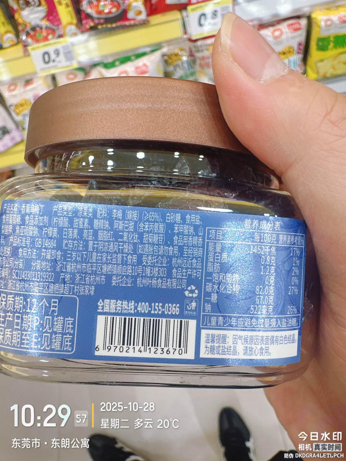 2025年10月24日,22:23,我在东莞大朗大井头第二工业区零食很忙店买了零度深林香薰乌梅丁150g(罐)火鸡面,橙汁等食品,回家我怀孕的媳妇打开乌梅丁,她吃着说这个怎么和之前味道不一样呀,我说刚买的不应该有问题呀,我赶紧翻了其它的,里面竟然有这种发霉的梅子。我赶紧去找店家,询问这食品是不是有问题,他老板一直说没事,我说如果没问题,那你就把这种的梅子挑出来全部吃了,我让他把这种全吃了,他怎么不敢来吃,另外我要求他提供进货的批次检验报告等了半个小时也提供不出来。不过老板还怪聪明的,还知道影响不好。最后在警察叔叔的帮助下,才退款。 诉求---请市场监管局部门严格审查食品店,并将审查结果电话通知到投诉人 食品店地址---东莞大朗镇大井头第二工业区零食很忙店
