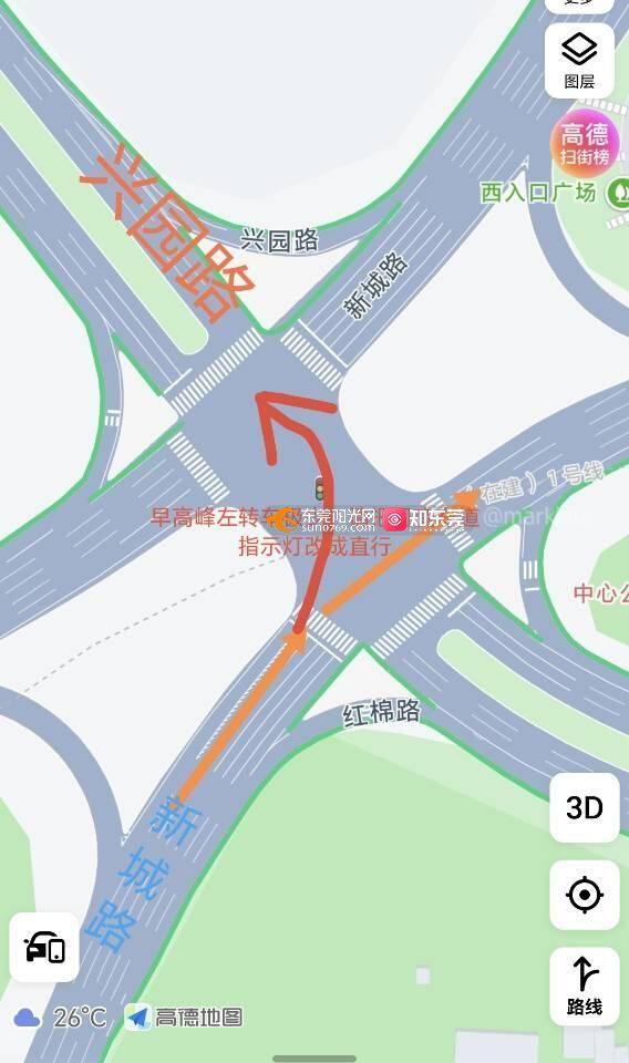 松山湖新城路左转兴园路的可变车道灯设置不合理导致拥堵加剧