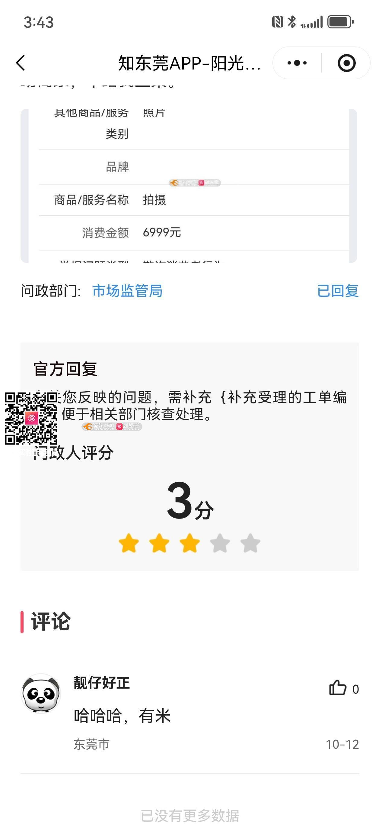 有关您反映的问题,需补充{涉及的全国12315平台受理工单编号}便于相关部门核查处理。
