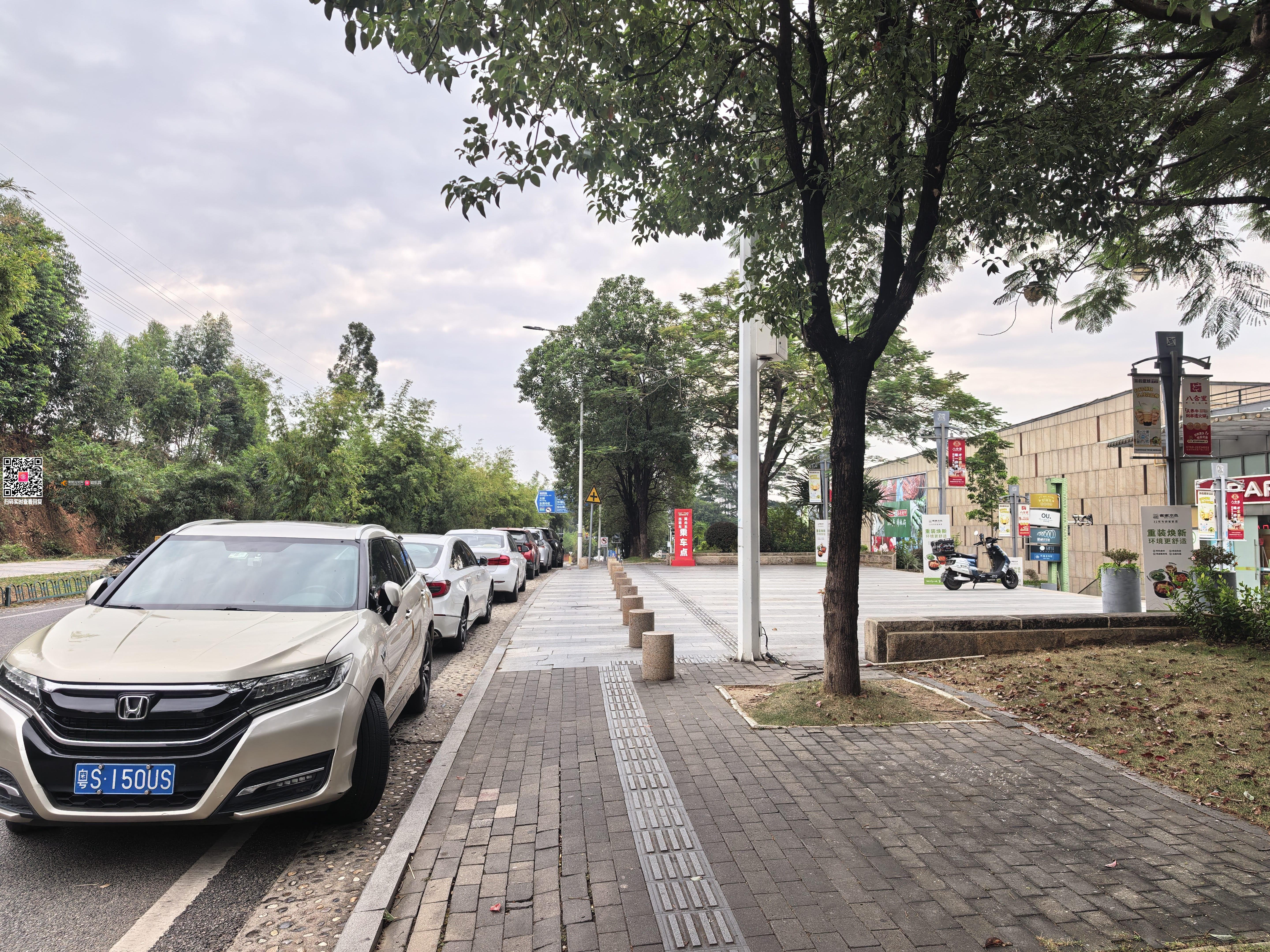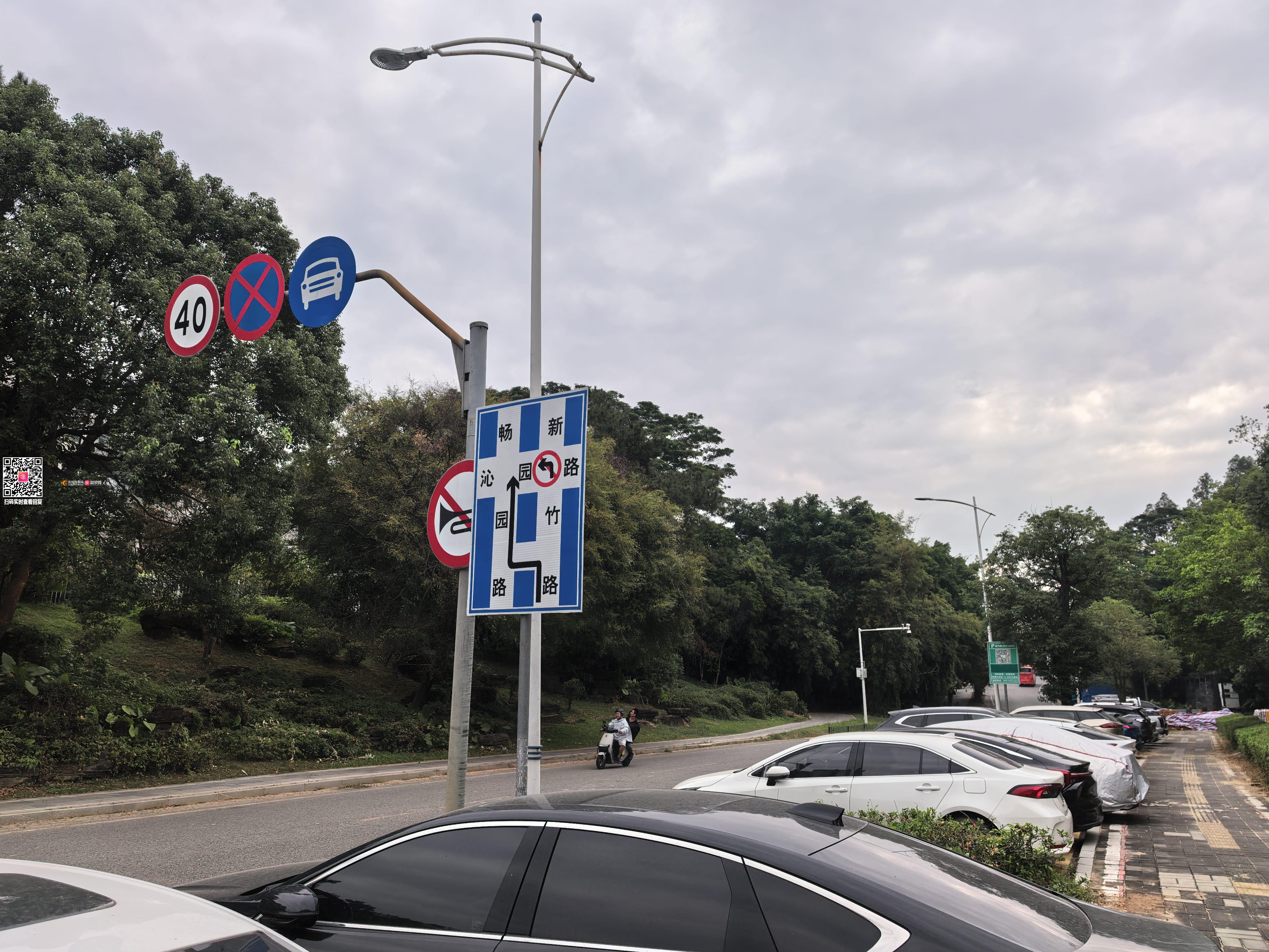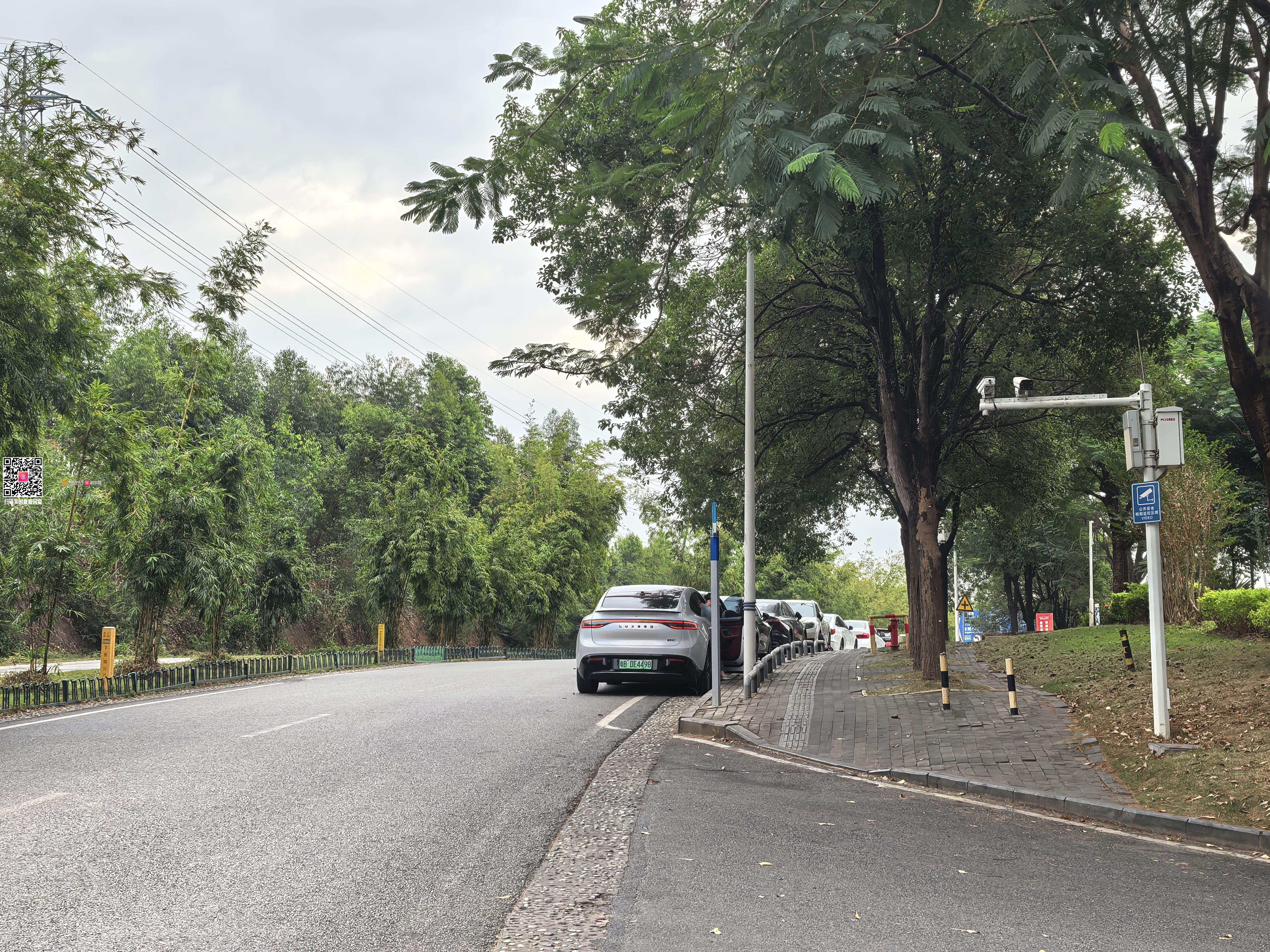 东莞松山湖万科生活广场西侧新竹路,全路段有禁停标志且修有停车场。由于交警部门的长期不作为,此处常有车辆在嘉荣超市门口路段占道违停。导致由北向南行驶的车辆需要在此借道。由于此处是坡路加弯道,借道超车完全看不见对向来车。在造成交通拥堵的同时。有极大的交通安全隐患。为何不在此增加道路中央护栏和违停电子警察抓拍?