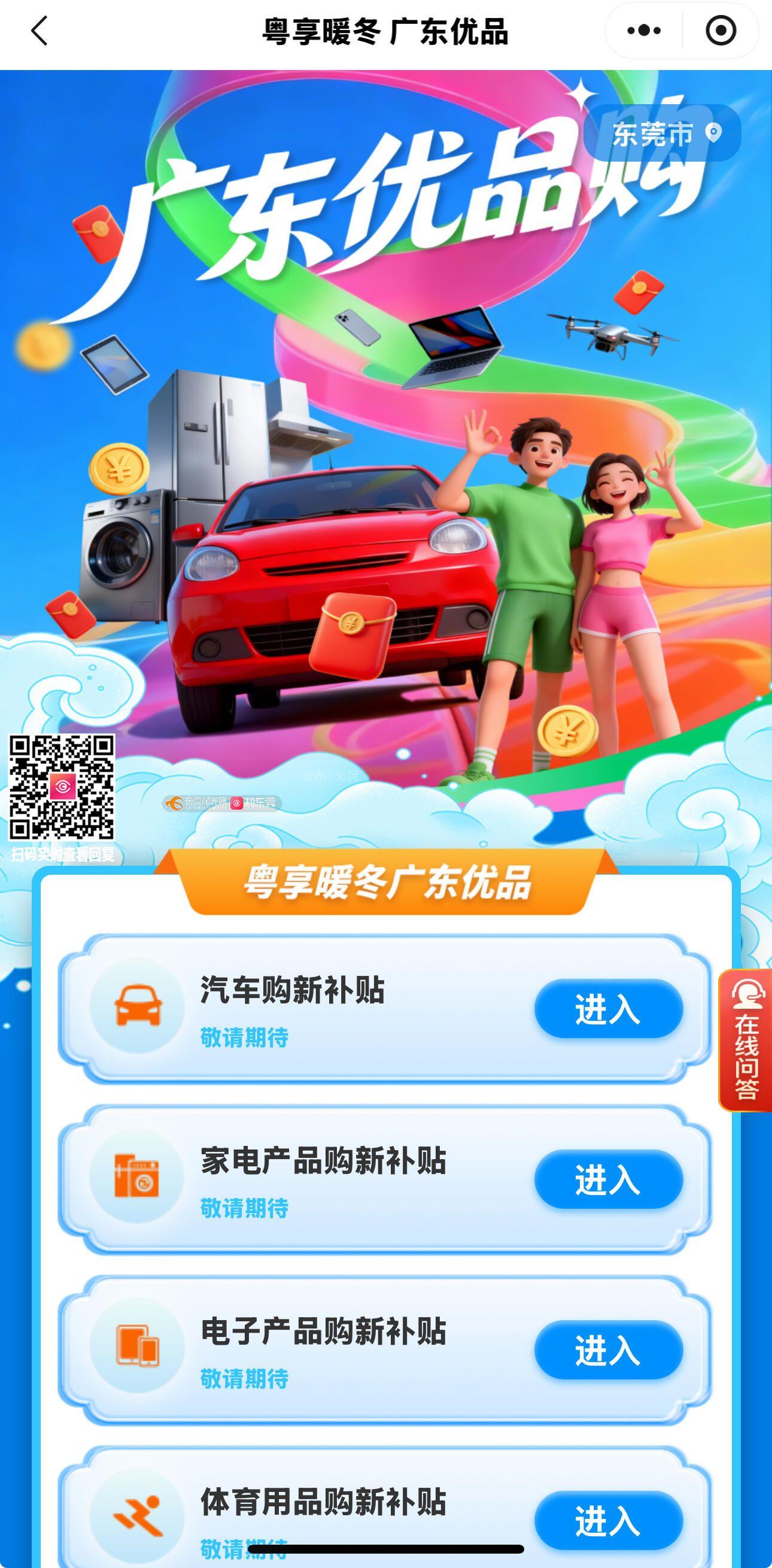 尊敬的市民朋友:您好,您反映的问题已收悉,现回复如下:“广东优品购”暨“乐购东莞”汽车促消费活动已正式启动,2025年11月3日至2026年2月28日起在我市报名参与活动的商家购买符合条件的个人乘用车可申领购车补贴,具体流程请查看“乐购东莞官方资讯号”11月5日发布的宣传推文。如有疑问,可于工作日8:30-12:00,14:00-17:30致电东莞市商务局市场规划与建设科,联系电话:0769-22997380、22817597。感谢您对我们工作的关注和支持!祝您工作顺利,生活愉快!