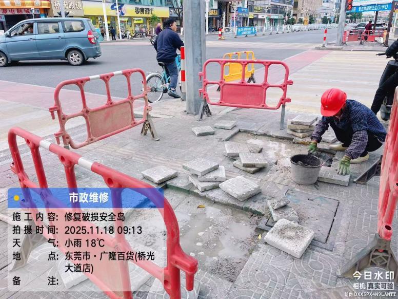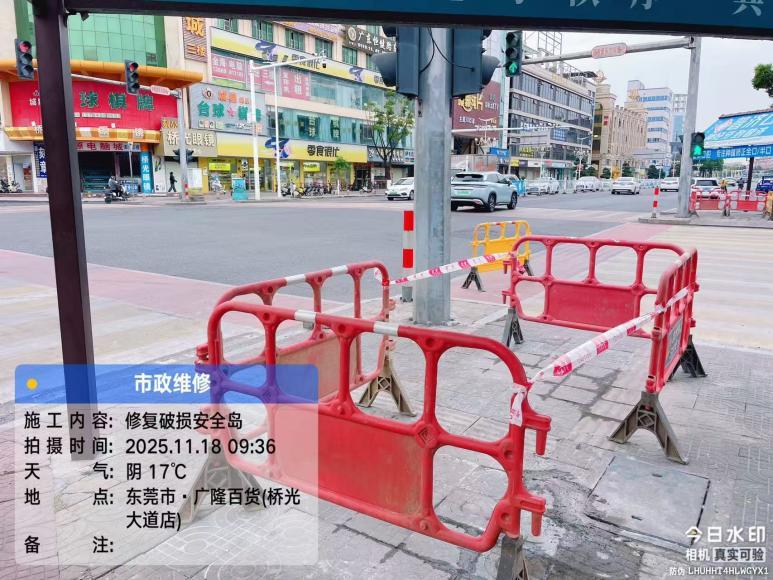 每天下班,上班车流量非常之大,广隆百货旁边红绿灯那四个灯红绿灯的台,地砖都有大片损坏不平,路过行人,电动车,非常大的安全隐患,下雨天,更是会直接变成一个坑,水建人一身,哟见过两次电动车在上面骑翻车的。希望桥头镇管理这个道路交通的部门,能够加紧处理一下。现在天气多变,时不时下雨。安全还是要注意的,谢谢🙏🏻