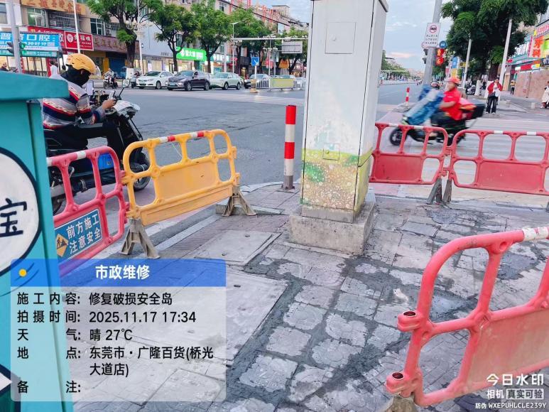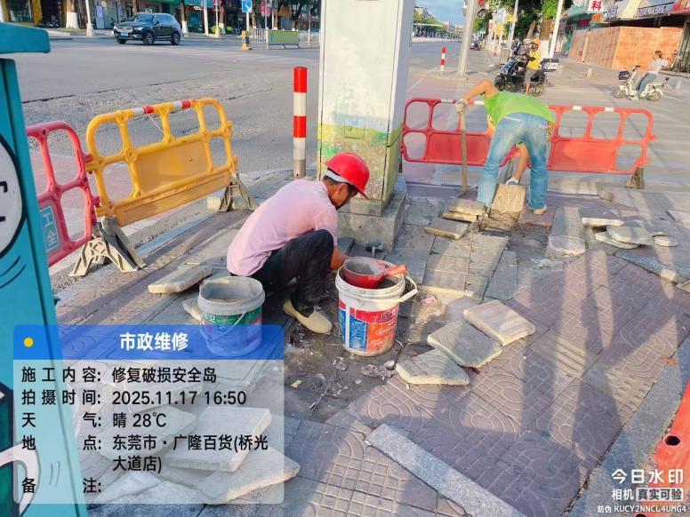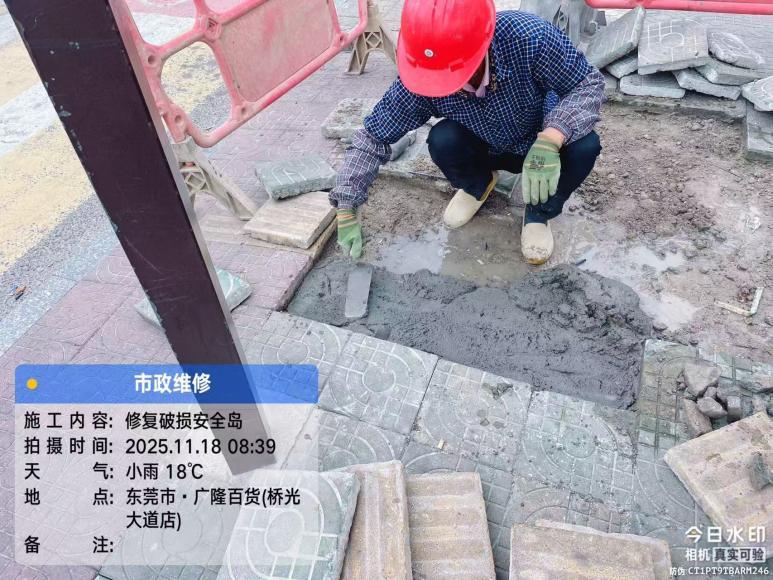 尊敬的市民,您好!您反映的问题已收悉,现桥头镇城市管理和综合执法分局回复如下:收到您反映的情况后,我分局工作人员于2025年11月10日15时18分通过电话与您取得联系,进一步与您确认了具体诉求内容。关于您反映的岛台地砖损坏问题,我分局已于11月17日组织施工人员前往现场进行修复,并于11月18日完成修复工作,目前该处安全隐患已消除。如有疑问,请联系我分局服务电话83451278,感谢您对我们的理解和支持。
