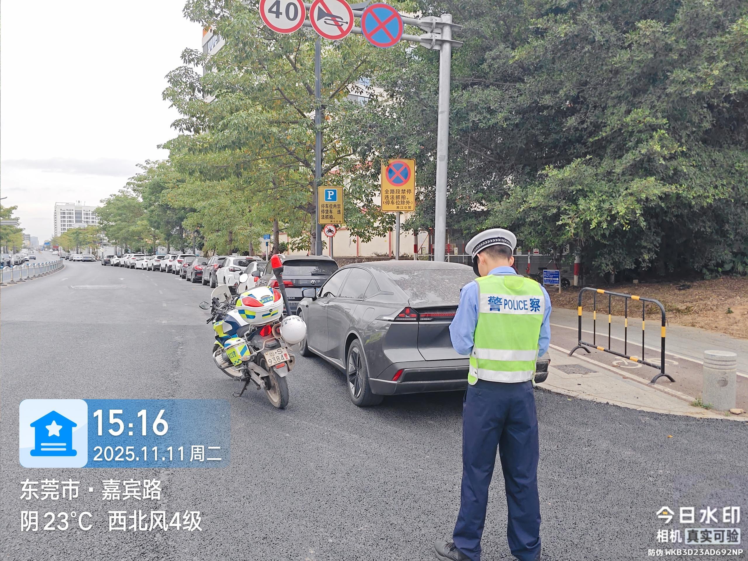 东莞市黄江镇田心社区嘉宾路长期违停车辆堵车,交警每次均敷衍处理。