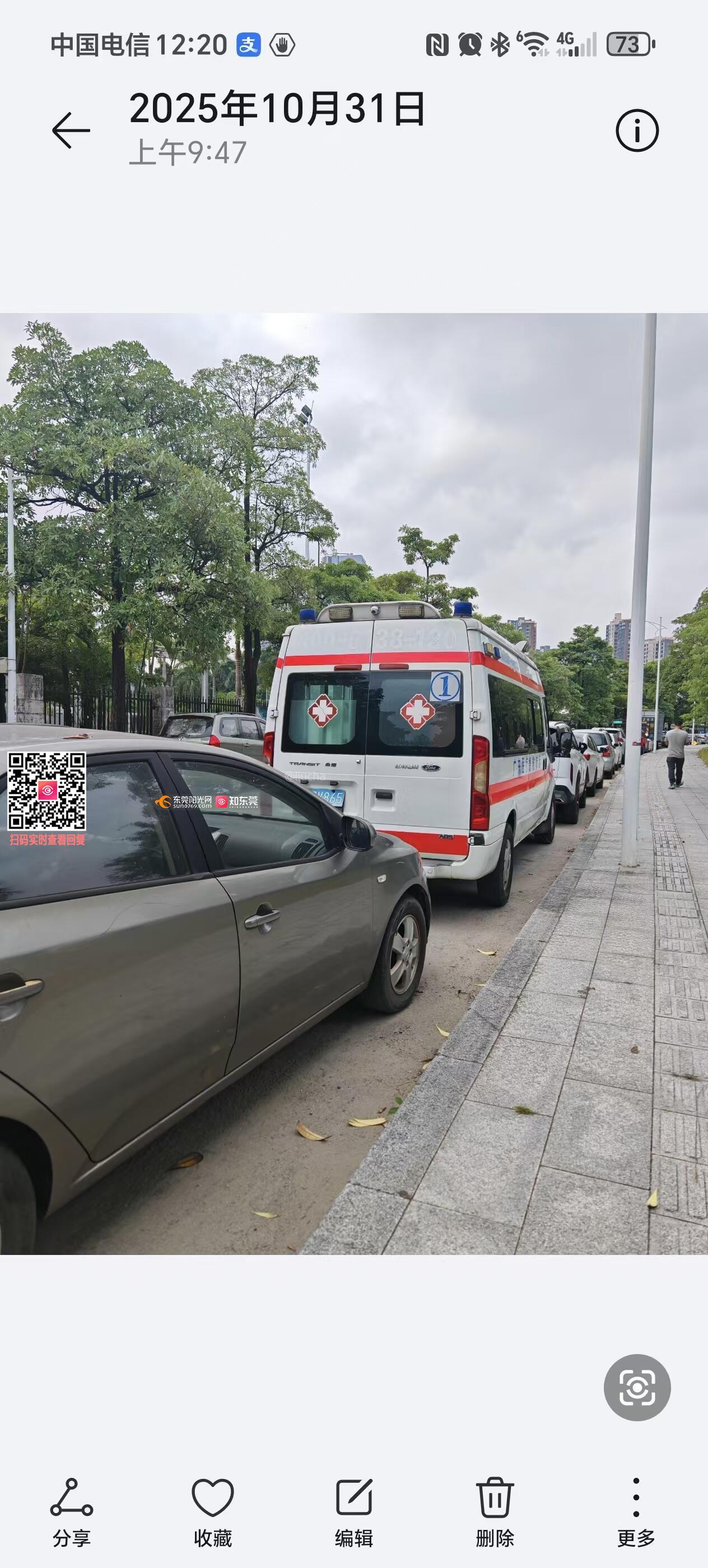 尊敬的市民:您好!您反映的问题已收悉,现回复如下: 我局收到该诉求工单后,前往该地点,经现场辨认和向东莞市120急救中心确认,该车辆属于“非急救转运”性质的车辆,并非属于120指挥系统,属于第三非急救转运机构,我局已通知该机构将该车辆挪走。如有疑问,可联系万江街道卫生健康局,联系电话:22286003。