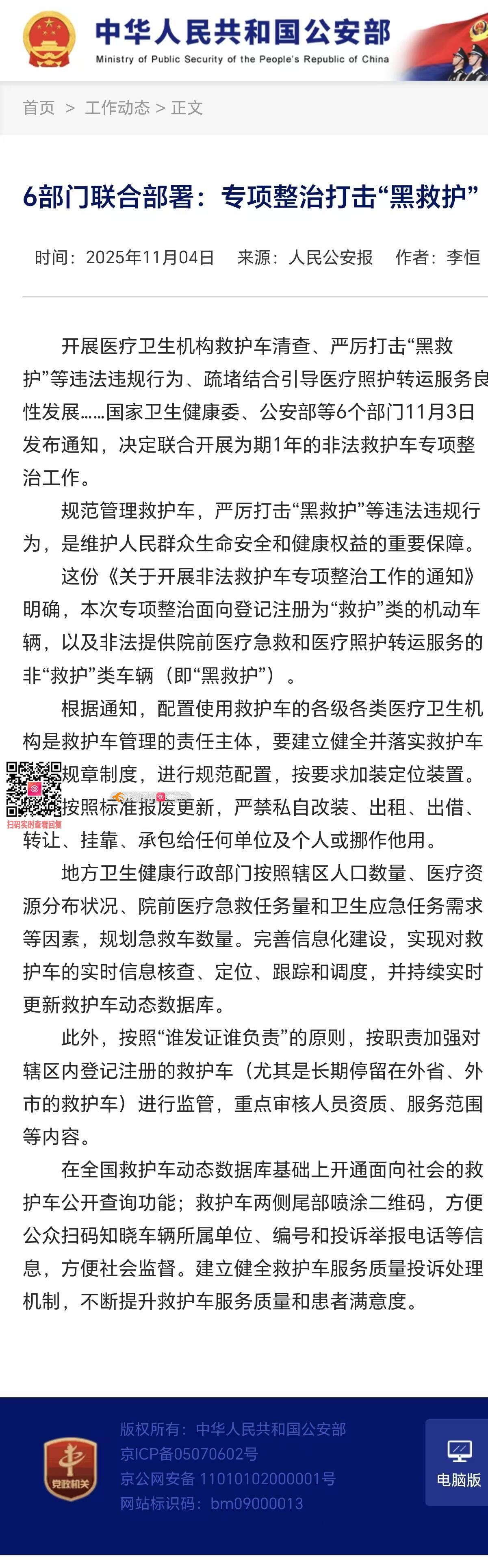 11.4日看到公安部发布的”国家联合6部门联署,专项整治打击黑救“的新闻,更加肯定心中疑惑。(图2)