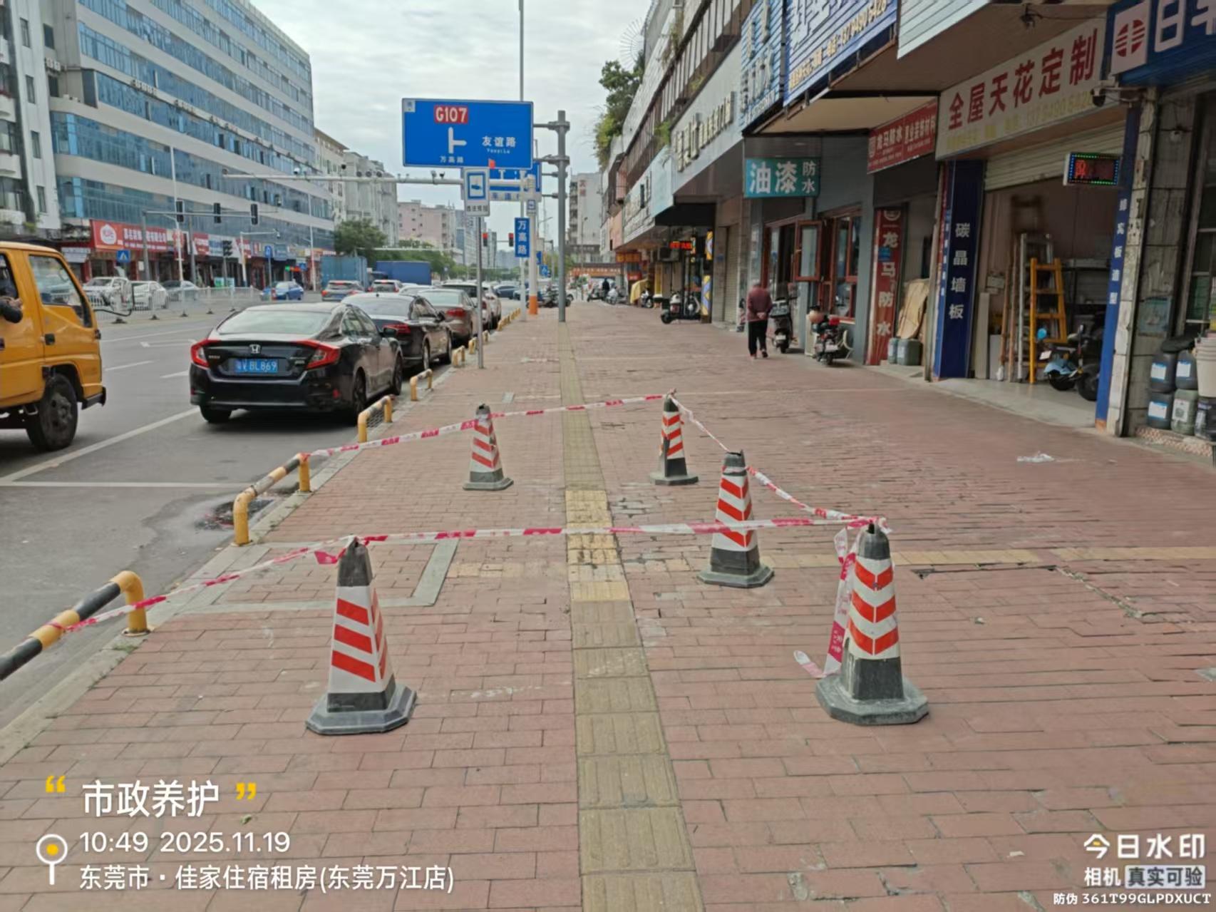 尊敬的市民,您好!您反映的问题已收悉,现回复如下: 经核实,该路段人行道存在多处地砖破损、松动问题,主要因以上人行道设计为人行功能,近年电动车通行量激增,频繁碾压导致地砖受力过载、结构损坏;目前养护单位已对坑洼路面进行了修复。 为彻底解决群众诉求,改善通行条件,该路段已纳入2025年度街道交通综合整治重点项目,计划拆除部分人行道,新建非机动车道,并完善标志标线、无障碍设施(改造范围约1300米),目前已进入前期规划阶段。感谢您的监督与反馈,我们将加快推进项目进度,尽快解决通行隐患。如有疑问,您可联系东莞市城市管理和综合执法局万江分局(电话:0769-23380442)。感谢您对我们工作的理解和支持!