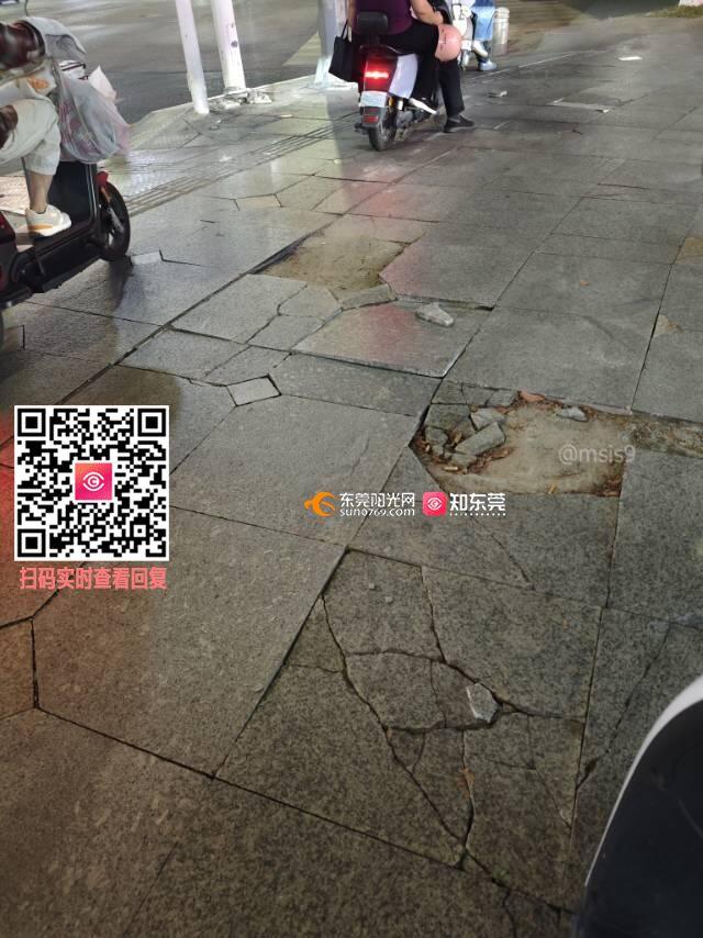 尊敬的市民,您好!您反映的问题已收悉,现回复如下:接投诉后,我分局派出工作人员到现场进行调查,情况属实,现已联系施工方并督促其尽快购买材料处理破损位置,预计12月中旬完成。致电解释市民表示理解!如有城市管理方面的问题,可致电虎门城管分局24小时值班电话:89328222或通过微信公众号“东莞城市管理”进行反映。 感谢您对城市管理工作的监督与支持!(东莞市城市管理和综合执法局虎门分局)