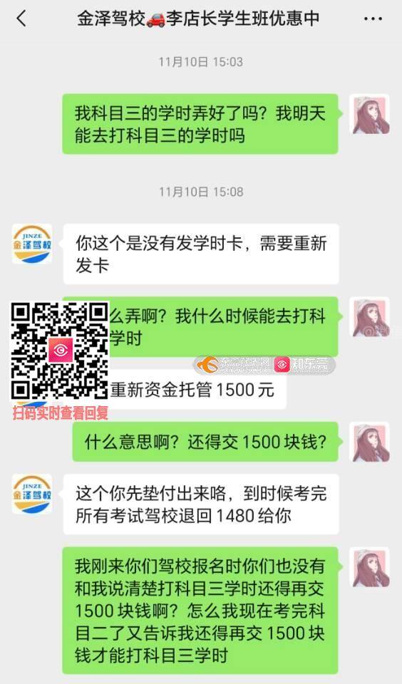 举报金泽驾校欺骗消费者,恶意收费,服务态度恶劣。我于4月11号在金泽驾校报名,当时金泽驾校为了骗我交报名费,骗我说打科目三学时的要在东莞驾培上交的1500元也包含在学费内,他们驾校是一次性收费,交完学费后在他们驾校学车不再需要缴纳任何费用。当我考过科目二准备打科目三学时发现打不了。金泽驾校让我自己另外再拿1500元去东莞驾培上缴费才能让我打科目三学时。我与金泽驾校负责人多次交涉,对方不回我的信息,也没有给我任何解决的方案。我对此感到非常愤怒,金泽驾校为了让我交报名费故意欺骗我说学费包含全部不需要另外再交费,待我考过科目二又让我另外交1500元。我多次与他沟通都故意不回我信息,恶意拖延我的时间。我要求金泽驾校退还多收的1500元给我