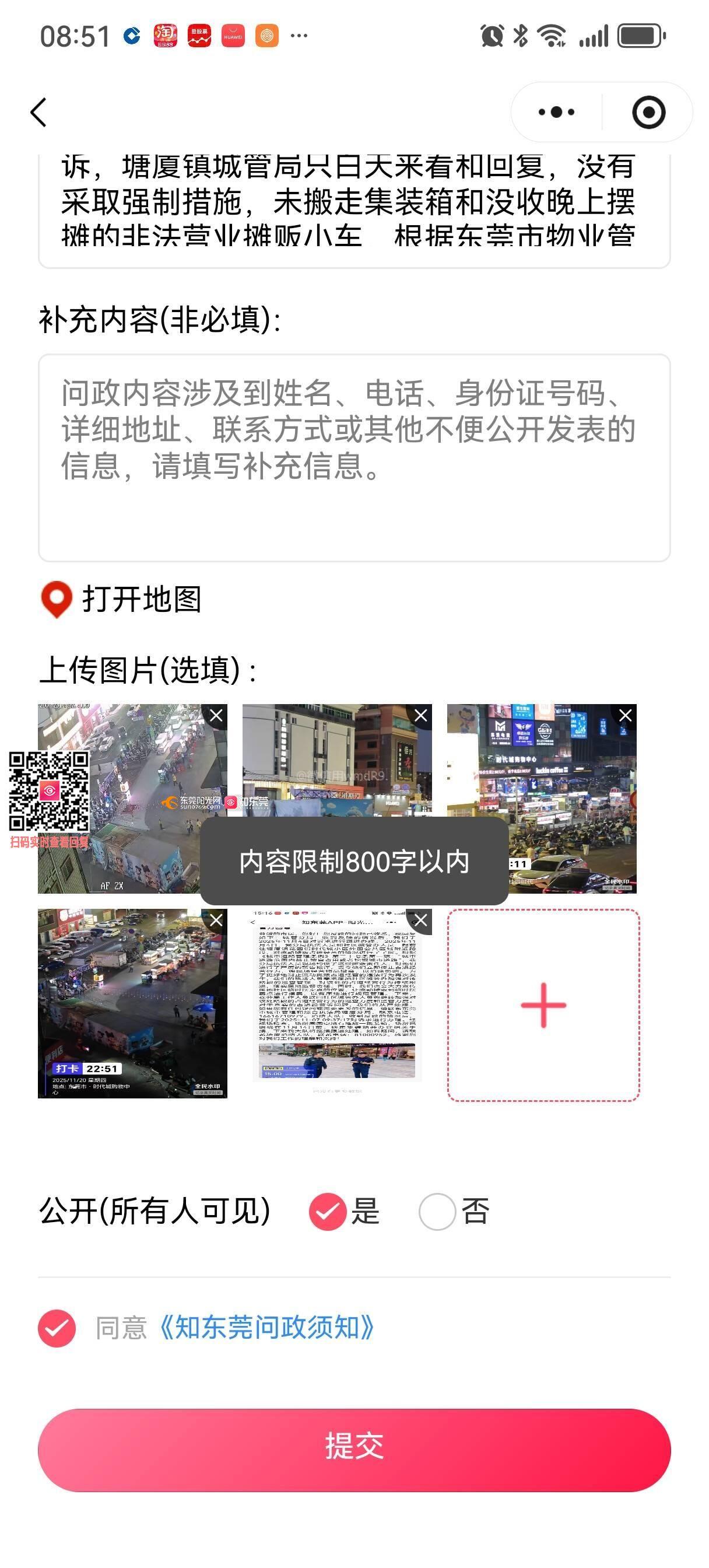 尊敬的塘厦镇政府领导及城管局执法队, 根据民法典第二百七十四条规定: 建筑区划内的道路,属于业主共有,但是属于城镇公共道路的除外。建筑区划内的绿地,属于业主共有,但是属于城镇公共绿地或者明示属于个人的除外。建筑区划内的其他公共场所、公用设施和物业服务用房,属于业主共有。现在花园街时代城商铺外面的广场属于时代城小区全体业主共用,并不是商业业主专有,商业业主将两个集装箱放在这个广场上,做为外面摆摊摊贩放杂物用,商业主和物业每月收取费用,严重影响其他业主的利益,放集装箱的位置本是住宅区业主出行的必经之路,现在被占用后,阻挡业主出入,并且集装箱旁边就是进去小区车库的机动车道,开车进去挡住驾驶员视线,存在严重的安全隐患,消防大队回复要求集装箱11月14号前搬走,没有搬走,夜晚在商业外面广场上晚晚摆摊的摊贩,是商业的租户非法占用小区公共区域的行为,阻挡业主活动和出行的道路,还存在噪音污染,环境污染,吃摊贩东西的人员喝酒吃完后,大声喧闹,没有厕所。在小区八单元后面随地大小便,经过多次投诉,塘厦镇城管局只白天来看和回复,没有采取强制措施,搬走集装箱和没收晚上摆摊的非法营业摊贩小车,根据东莞市物业管理条例第六十三条 违反本条例第四十七条第一款规定,给他人造成损害的,依法承担民事责任,并由有关部门按照下列规定予以查处;(二)违反第四项规定在住宅小区沿街商铺门前及非封闭区域乱摆卖,违反第五项规定在建筑物、构筑物或者树木上乱悬挂、乱张贴、乱涂写、乱刻画,影响市容,在公共场地上放置杂物,及违反第三项、第六项、第七项规定的,由市城市管理综合执法部门依法查处;(三)违反第八项、第十三项规定的,由消防救援机构依法查处;请塘厦镇政府领导安排城管分局依法强制执法,搬走集装箱和没收晚上在时代城范围内公共区域摆通宵的非法摊贩的流动小车!附上多次投诉,和现状照片!