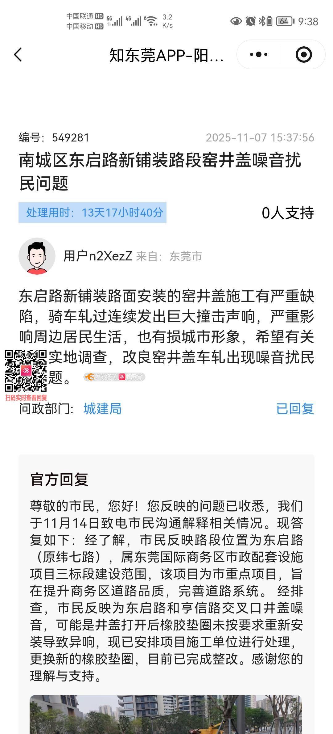 11月初反应路段井盖噪音的问题,城建局回复原因已整改,实际情况是80%的井盖噪音依然存在,整改并不到位,请有关部门实地考察,找到根本原因并真正解决问题。