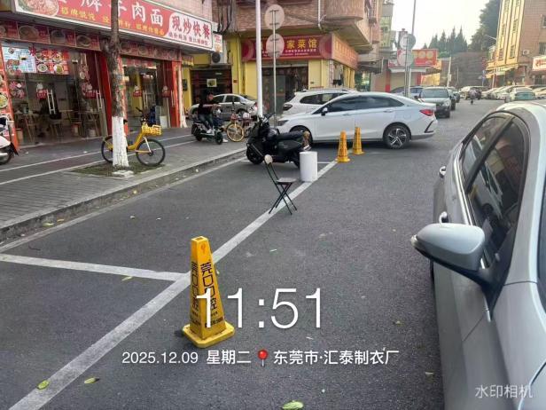 尊敬的市民,您好!您反映的问题已收悉,现回复如下:接到投诉后,茶山城管分局工作人员于2025年12月09日11时50分到现场处理,现场已对占道车位物品进行清理,避免影响市民正常出行。感谢您对我们工作的支持,同时建议以后遇到此类事件,可直接拨打茶山城管分局24小时值班电话0769-81859398进行反映。