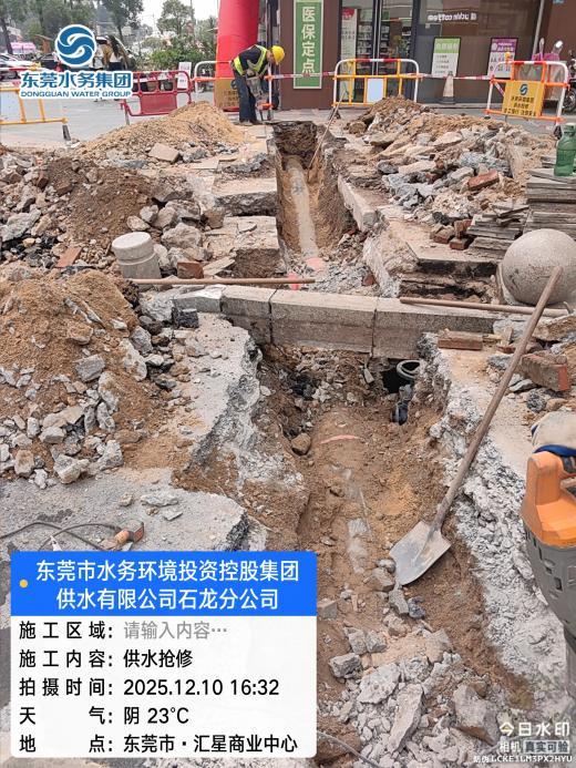 尊敬的用户,您好!您反映的问题已收悉,现回复如下: 收到反映的情况后,东莞市水务环境投资控股集团供水有限公司石龙分公司(下称“石龙分公司”)于2025年12月11日17:17电话与您取得联系并对诉求进行办理。 关于您反映停水的问题,经核实,2025年12月9日17:00,石龙分公司位于石龙镇裕兴路438号聚龙御龙湾小区东南门的一条dn315PE供水管道突发爆漏,石龙分公司工作人员于当日17:08到达现场组织开展抢修工作,同时设置临时取水点及发送停水短信通知,该管道已于当日21:27完成抢修并恢复正常供水。 经统计,近三个月内您所在地址受市政管道影响停水共3次,停水原因均为该小区东侧dn315PE供水管道三通或弯头处爆漏,分别为2025年9月5日、10月8日、11月28日,为降低对市民正常用水造成的影响,在抢修作业实施前,石龙分公司通过短信向受影响区域用户发送停水通知,提醒市民做好储水准备。同时,为解决受影响市民的临时用水需求,抢修期间石龙分公司在停水区域提供应急送水服务,上述抢修完成后均已及时复水。为解决上述区域水管频繁爆管问题,提升供水稳定性,经实地勘察并综合研判管网现状,石龙分公司将对老化管道实施全面更新改造工程,计划于2026年2月完成管道更换工作。为最大限度降低停水施工对居民用水的影响,石龙分公司将继续优化计划性停水时段,提前发送短信告知用户,在施工现场设置临时取水点等,切实保障市民基本用水需求。 停水期间给您生产生活带来不便,石龙分公司深表歉意,敬请谅解。 2025年12月11日,石龙分公司联系您告知上述情况。 如有疑问,欢迎致电市水务环境集团24小时客服热线96968,感谢您对我们工作的理解和支持!