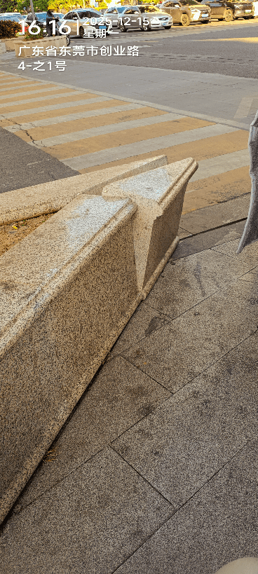 莞城,莞太路创业路路口,天桥底下花坛大理石脱落。危险。