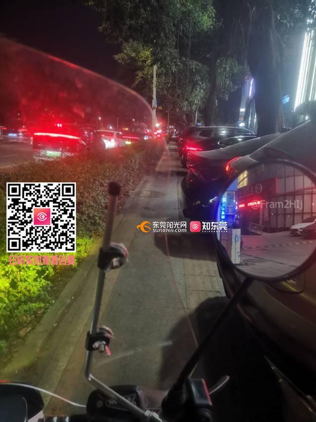 罗沙路地王广场路段 地王广场停车场车辆侵占非机动车道