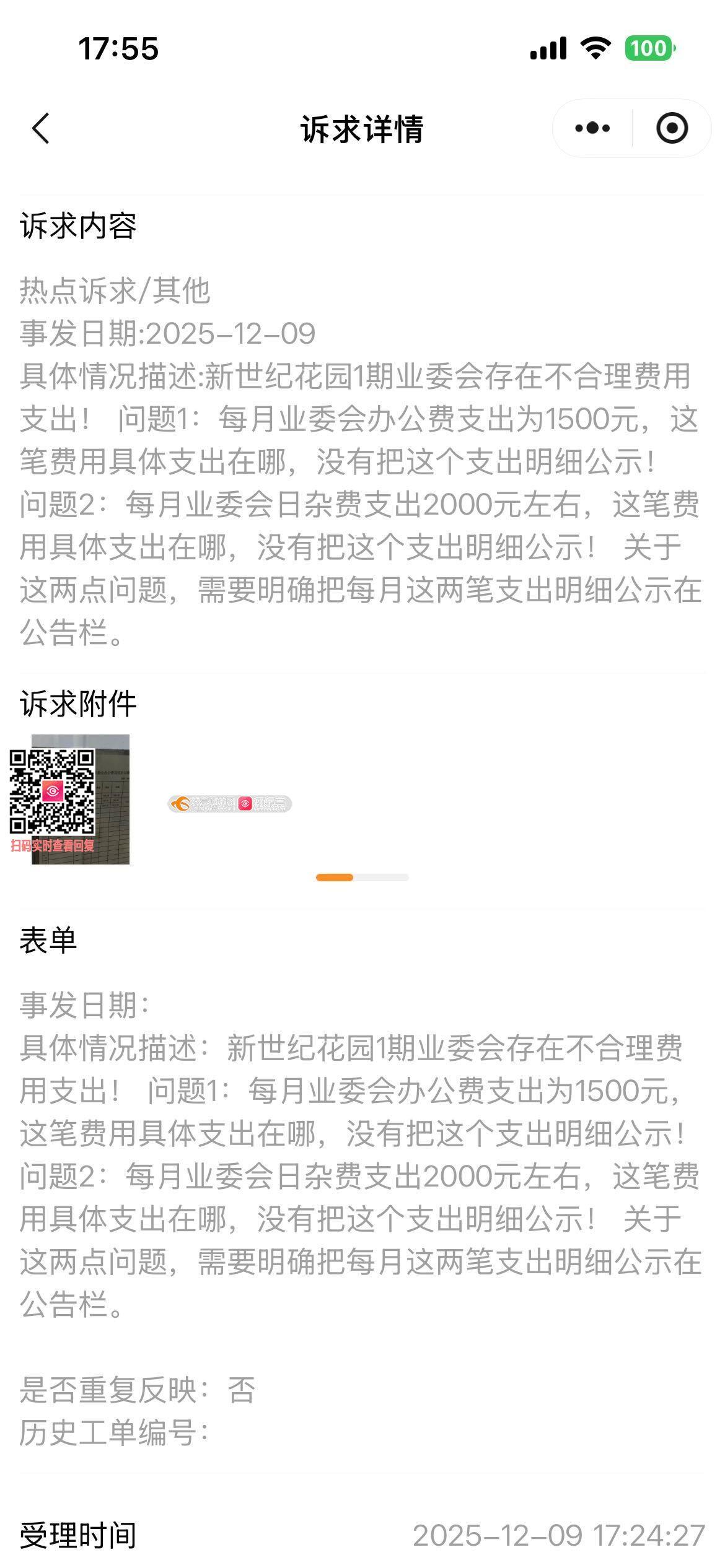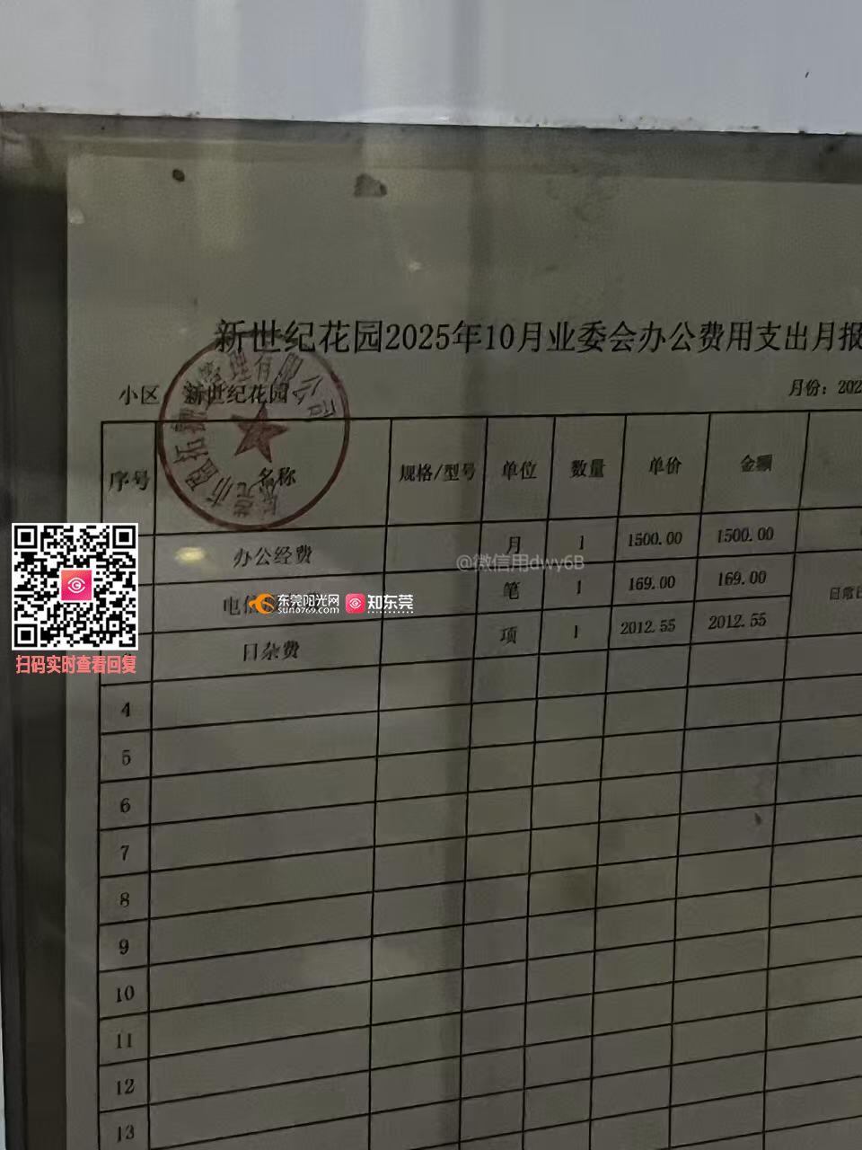 东莞市新世纪业委会,每月办公费支出1500元,每月日杂费2000元左右,没有把这两笔费用详细明细张贴在公示栏上,支出帐目不明确!!!!已经在12345投诉过,但投诉无果,问非所答,要求给出明确回复,而不是踢皮球。