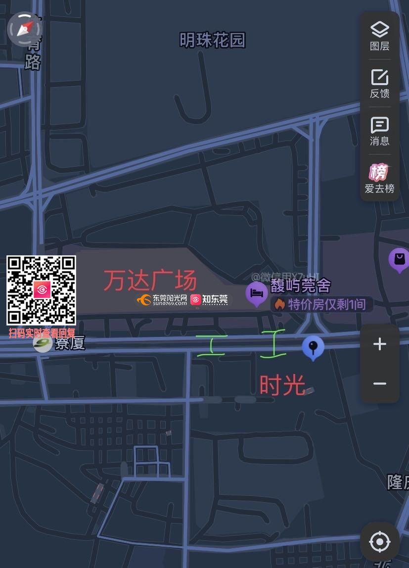 希望厚街政府打通厚街万达跟时光的娱乐商圈,在两个绿色位置点选取其中一个建设人行天桥,走地铁站或寮夏红绿灯走路绕路时间增加15-20分钟,非常之不便,希望有关部门采纳建议
