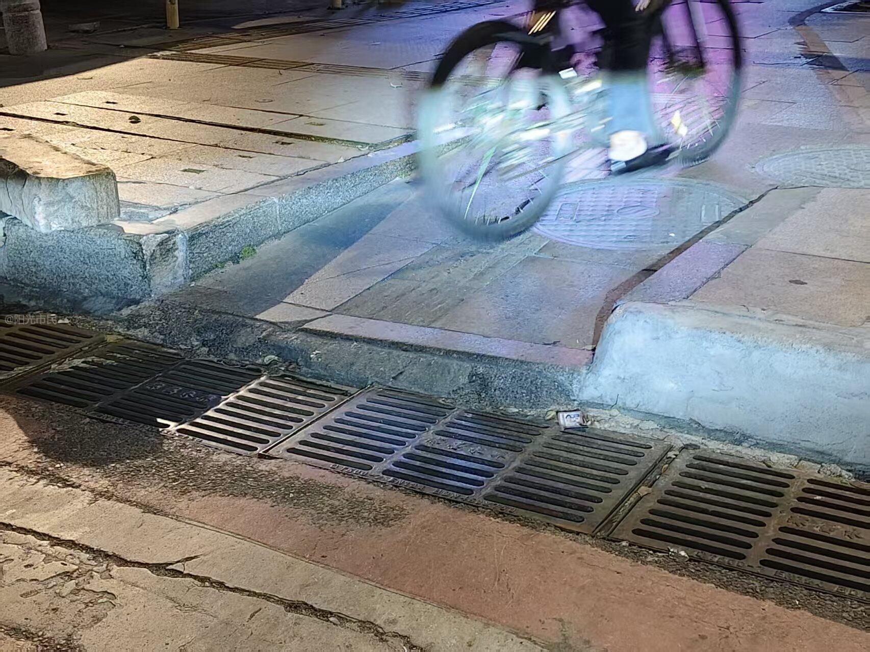 莞城东纵大道17号(东兴路与东纵路交叉路口,中国石化加油站入口),非机动道有台阶“坎”,路面太窄,通行困难!