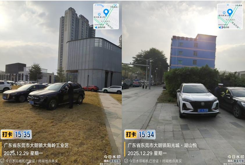 大朗阳光城湖山悦小区正门口草坪违规乱停车,严重威胁居民人身安全