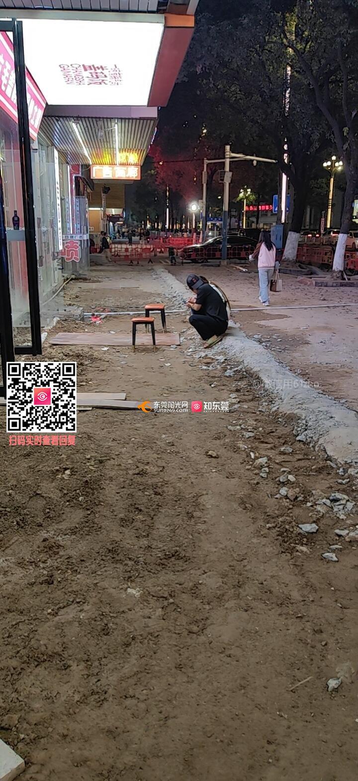 横沥镇中路46-64号店门口路面即建设银行对面铺装路面工程施工一个月有余(11月17日开始动工),至今都没把地面硬化,店门口坑坑洼洼,尘土飞扬,下水道不时飘出阵阵恶臭。完工日期遥遥无期,自旋工之日起,生意一日不如一日,给本以难做的生意雪上加霜!希望政府能体查民情,解决民忧尽早督促相关部门早日完成项目,给我们一个美好的生活和经商环境!