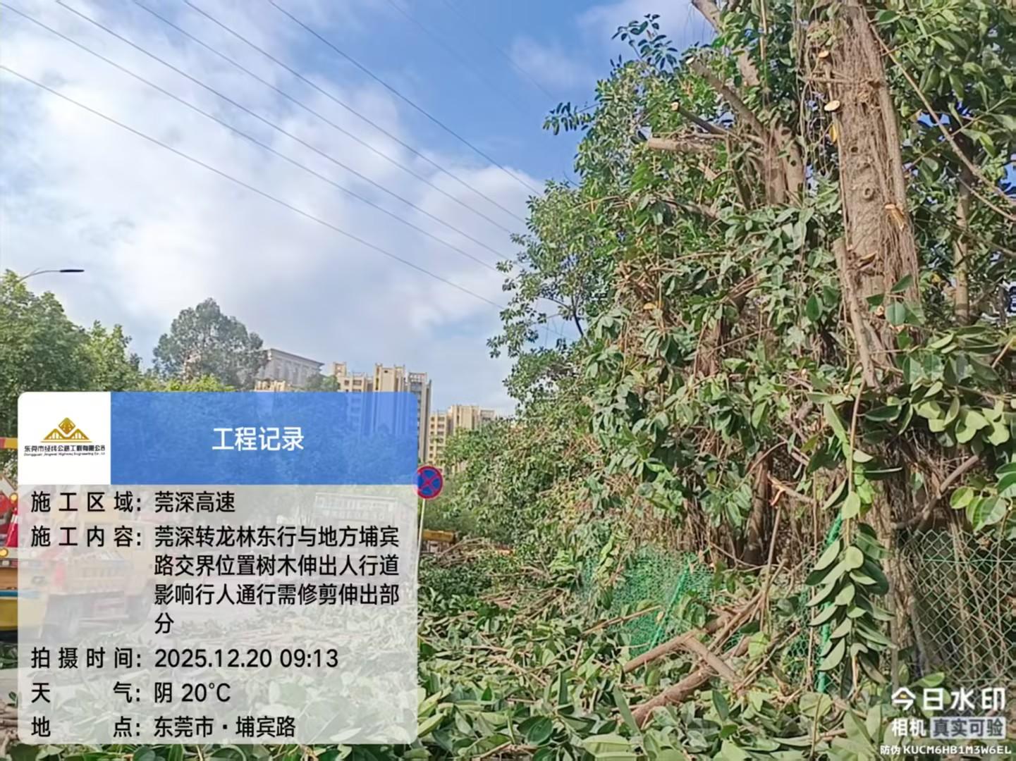 尊敬的市民您好,转来阳光网诉求拟办单收悉。现将有关情况回复如下: 经核查,市民反映地点位于莞深高速转龙林高速东行与地方埔宾路交界位置,该路段两侧树木均有修剪。此前,我司收到市民投诉,反映该路段靠高速一侧树木伸出路面,侵占地方路人行道通行空间,存在安全隐患。为响应市民诉求、消除通行风险,我司仅对高速范围内种植树木伸出路面部分进行修剪,未涉及树木主干且已完成现场枝叶清理,另一侧靠近小区的树木非我司修剪。 后续我司将进一步优化作业管理,在保障道路安全通行的同时,最大限度降低对周边居民生活的影响。该路段目前正值龙林高速改扩建施工阶段,区域内各类施工活动相对集中,我司协调相关改扩建施工单位落实抑尘和降噪措施。 感谢市民对高速公路工作的关注与监督!