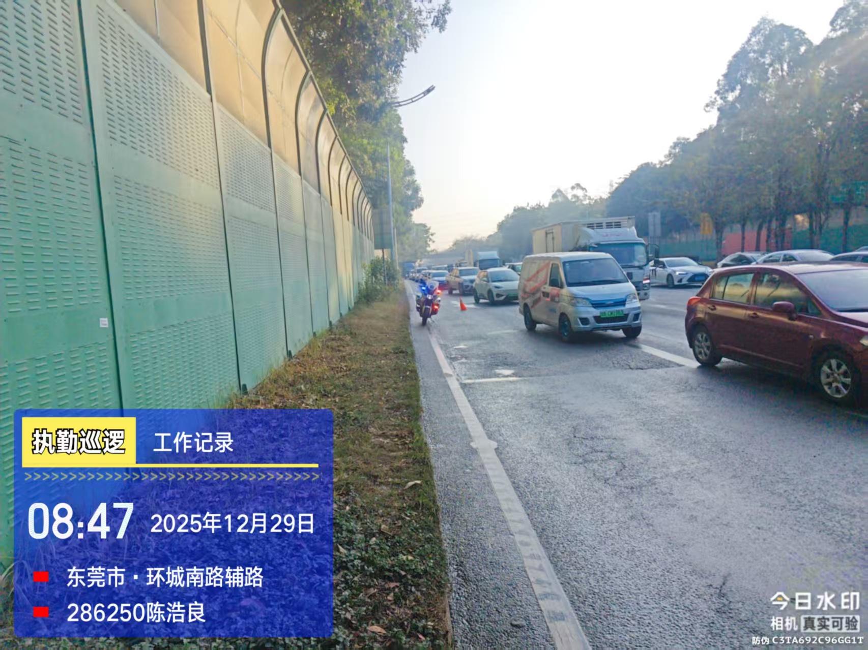 交控集团回复:目前环城路升级改造工程设计方案已取得阶段性成果,正在抓紧开展施工阶段的前置工作,待完成相关流程后,将启动相关建设工作。市交管支队回复:尊敬的市民,您好!来信内容已收悉,现由城市快速路大队答复如下: 一、基本情况。在历史工单28090514590378101中,已向您反馈,针对环城南路往环莞快速路入口段实际路况,目前我大队采取的一系列交通管理措施,在此不再重复叙述。根据您此次提出的第2点、第3点的路面疏导措施工作建议,城市快速路大队在高峰时段已安排了平峰时段两倍警力在上述易堵路段进行巡查疏导,旨在快速、主动发现路面车辆故障、事故等突发情况,快速处理、恢复道路正常行车秩序,且我大队此前已落实救援拖车前置定点值守、快速反应措施,提升救援车到场作业速度(附近日路面执勤铁骑在环城南路往环莞方向沿线路段事故处理、交通疏导工作照片)。另针对该路口常有车辆压实线变道的情形,事发路段已设置4套电子抓拍设备,对压实线变道的车辆违法行为进行抓拍处罚,同时我大队每日都有在“东莞随手拍”微信小程序,收到市民上传的行车记录视频证据,及时对此类压实线变道加塞(违反禁止标线)的违法行为进行依法处罚。 二、 感谢您对东莞公安交通管理工作的关注和支持。由于多次拨打您所留电话均显示该号码已停止服务,因此无法与您电话沟通,望理解。如对以上答复内容有疑问欢迎拨打城市快速路大队办公电话(0769-22265006)联系沟通,谢谢!