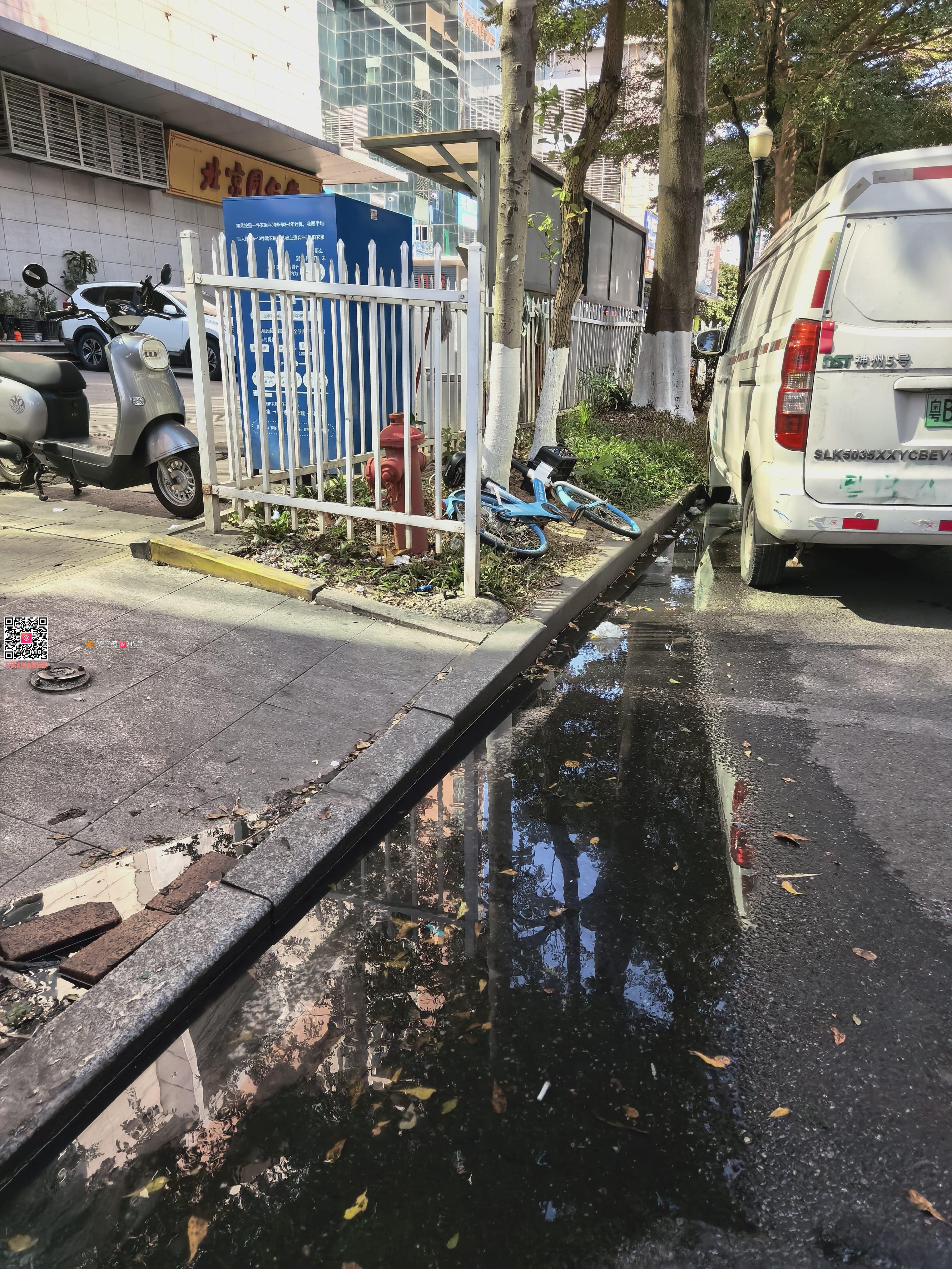 长安镇长盛荣昌街北京同仁堂道路旁长年污水横流,滋生蚊虫