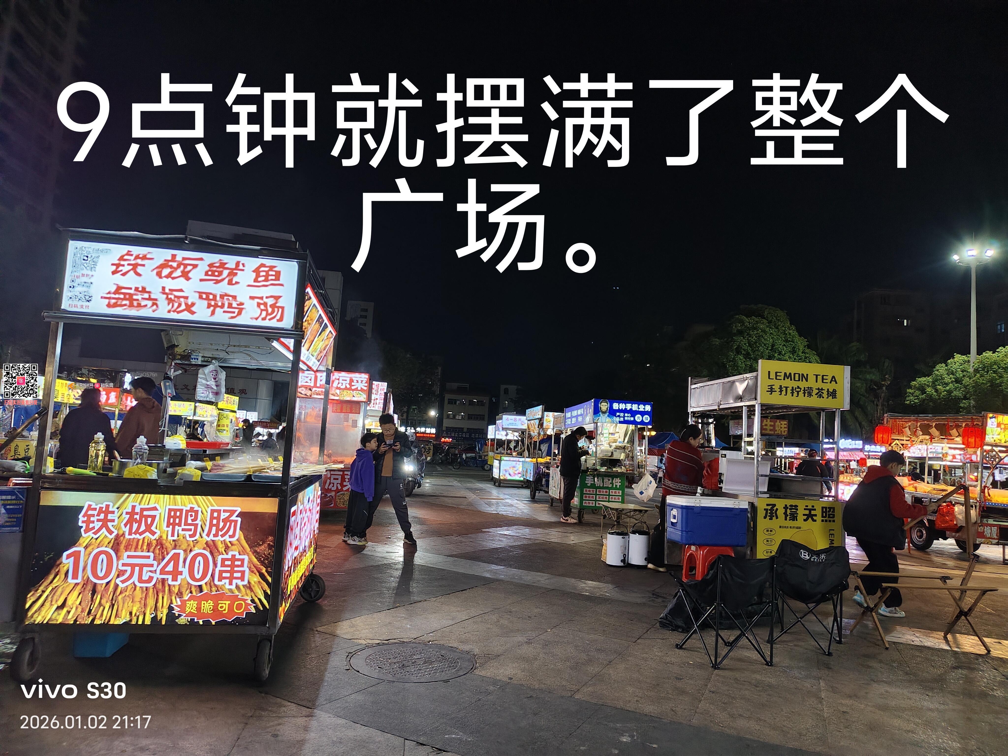 塘厦镇花园新街广场(东莞市第三人民法院正对面的广场)夜市占道经营油烟污染