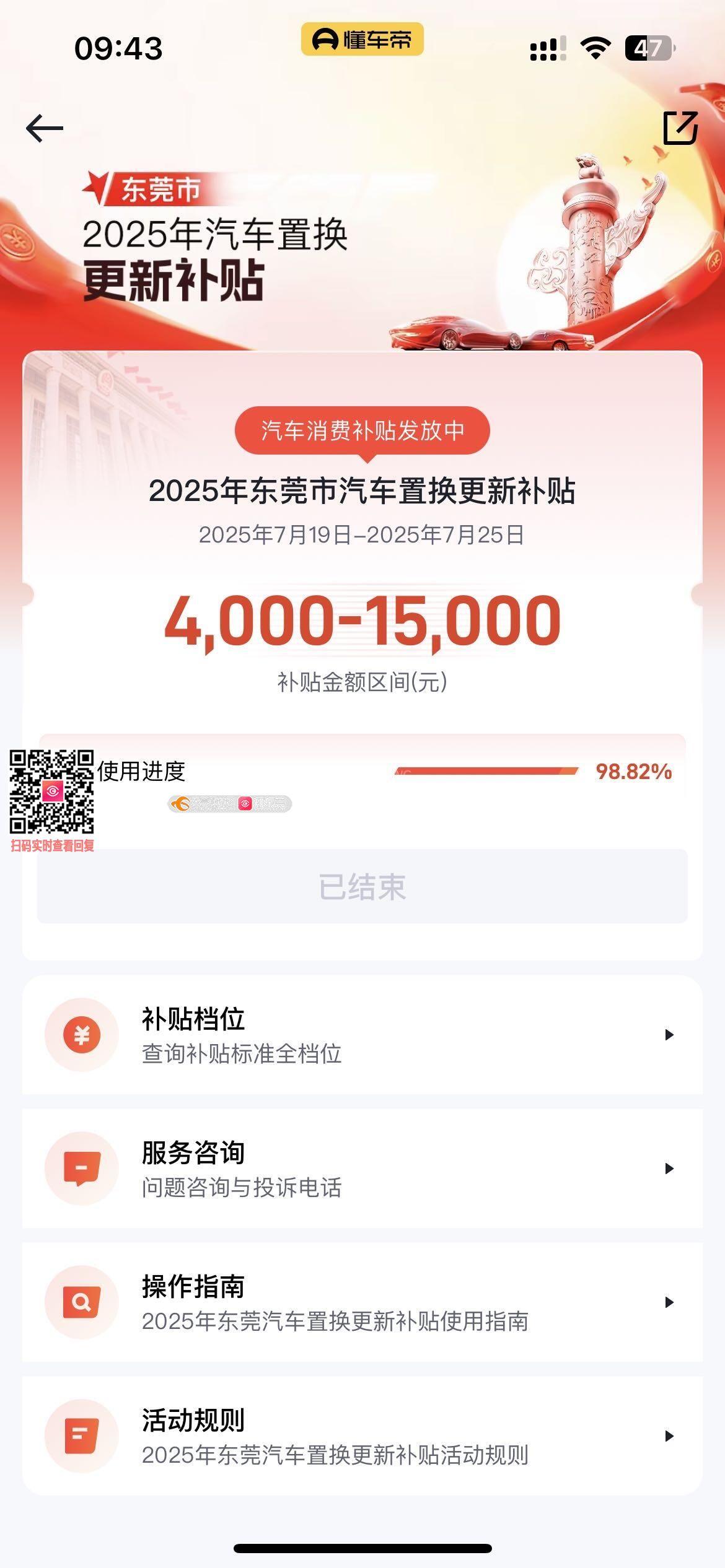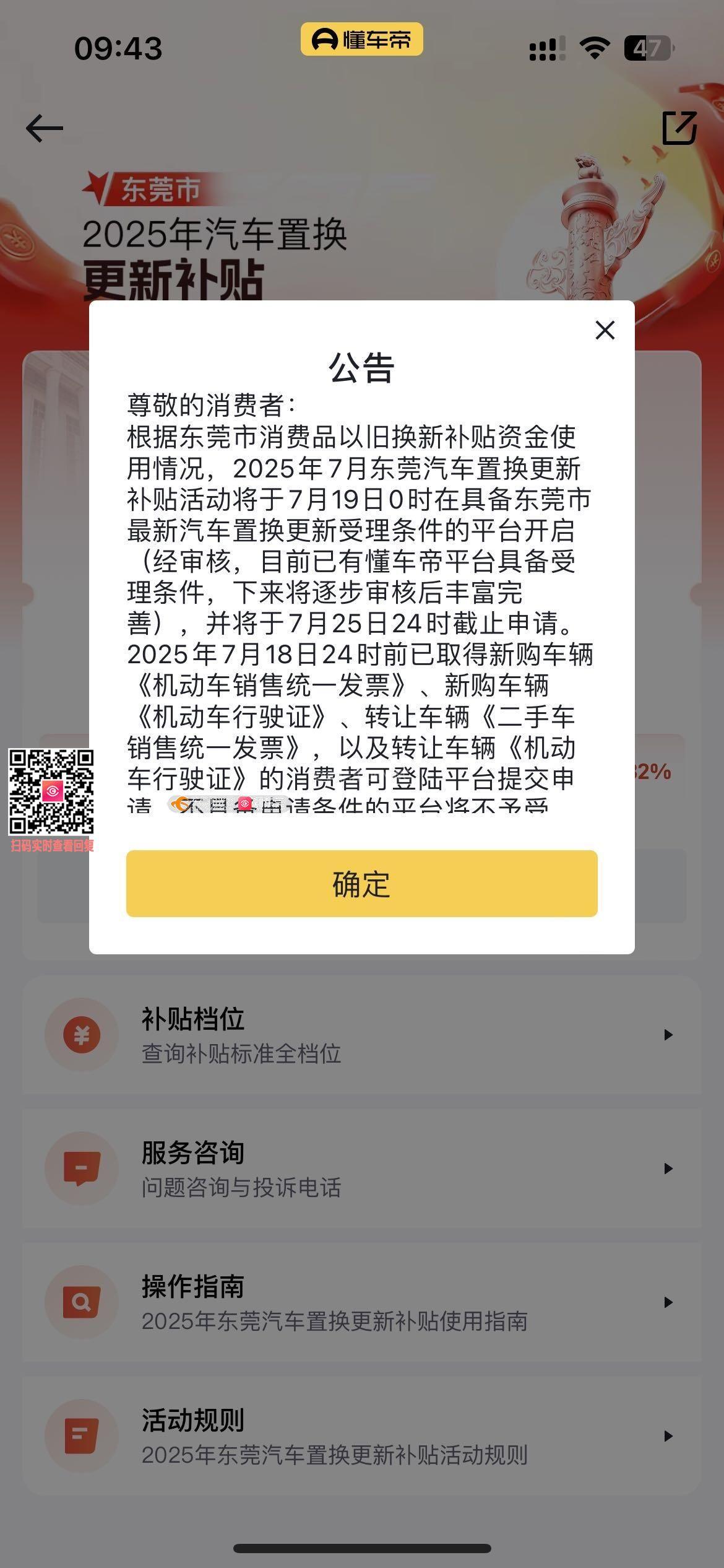 按照东莞市汽车置换补贴时间是2025年1月1日-2025年12月31日截止,但是东莞市商务部在7月18日就停止了,全年期间国家公布了陆续下达那么多的以旧换新的资金,但是东莞商务局一直没有新的资金补贴;直到11月3日才出了新的政策最高只有5000元的置换补贴。漏洞很明显:从2025年7月18日至2025年11月3日的置换补贴一直没有兑现,这三个半月的置换群体的该有的补贴就这样被你们这些不作为的商务部割韭菜了吗?打电话永远都是在通话中,哪怕接通了就是互相踢皮球。这么大的漏洞,你们当我们普通老百姓好欺负吗?国家有政策的前提下,强烈要求重新下达这段空档期的汽车置换补贴。