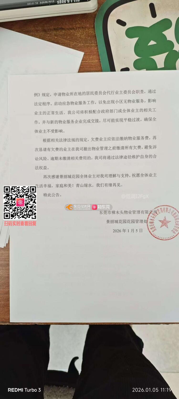 樟木头景丽城物业公司宣布离场
