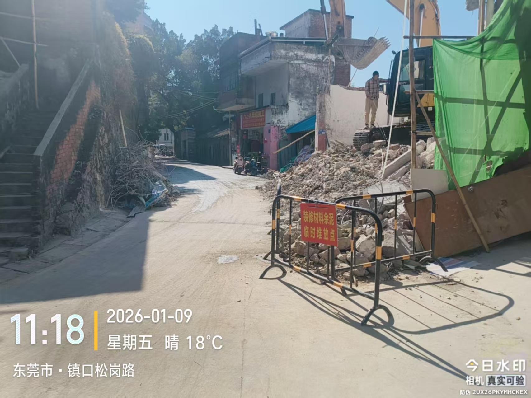 尊敬的市民,您好!您反映的问题已收悉,现回复如下:我们于2026年1月9日11:30:00对诉求进行办理。经核实,您所反映的情况基本解决,我社区工作人员到现场查看情况,此位置为镇口社区松岗路39号之三,属于拆旧重建,已向镇政府报备农房重建手续。为了施工安全,该业主在拆除前已用铁马将此路段进行临时封路。城管部门已多次到现场要求业主尽快清理拆除的建筑余泥,现该事发路段已于1月9日解封道路。如有疑问,请联系镇口社区城建办,联系电话:85509242。感谢您对我们工作的理解和支持!