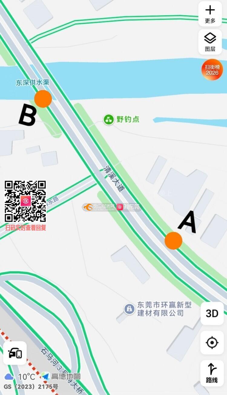 林东路已经修好几年了,很宽敞车流也很大,很多车从清溪大道拐到塘厦汽车城,东莞南站,法院,塘厦中心区。都是走林东路比较方便。但清溪大道南往北,北往南都没有到林东路的标识路牌。希望相关单位实地查看,希望在清溪大道上增加到林东路的路牌。 TKS! 图中A B两个位置增加林东路路牌
