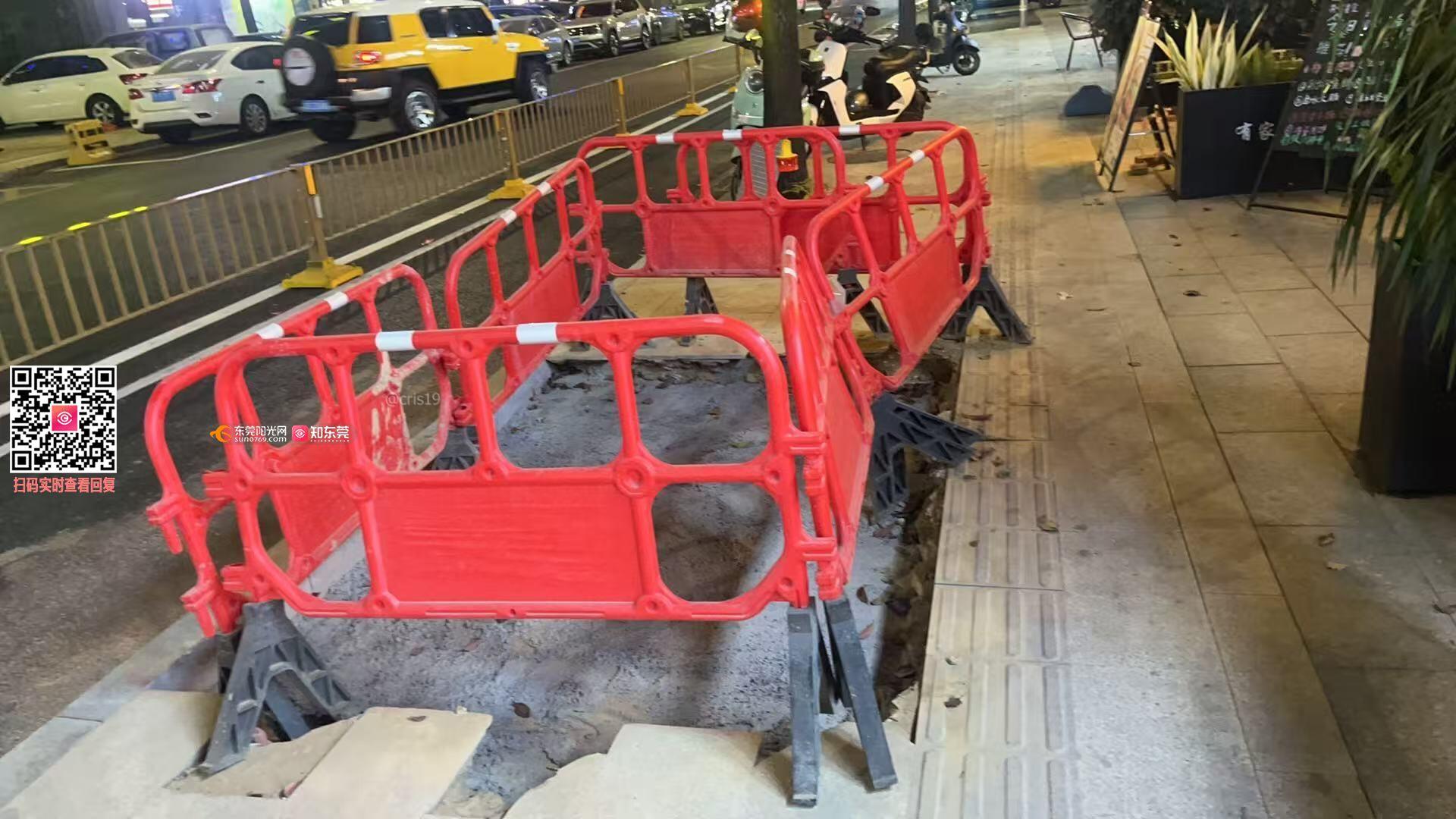 尊敬的市民,您好!您反映的问题已收悉,现回复如下: 经查,接获投诉后,我中心已安排工作人员到现场检查情况。现已经将瓷砖填充完毕。造成不便恳请市民谅解!如有疑问,请联系高埗镇工程建设中心,联系电话:0769-81136380。感谢您对我们工作的理解和支持!