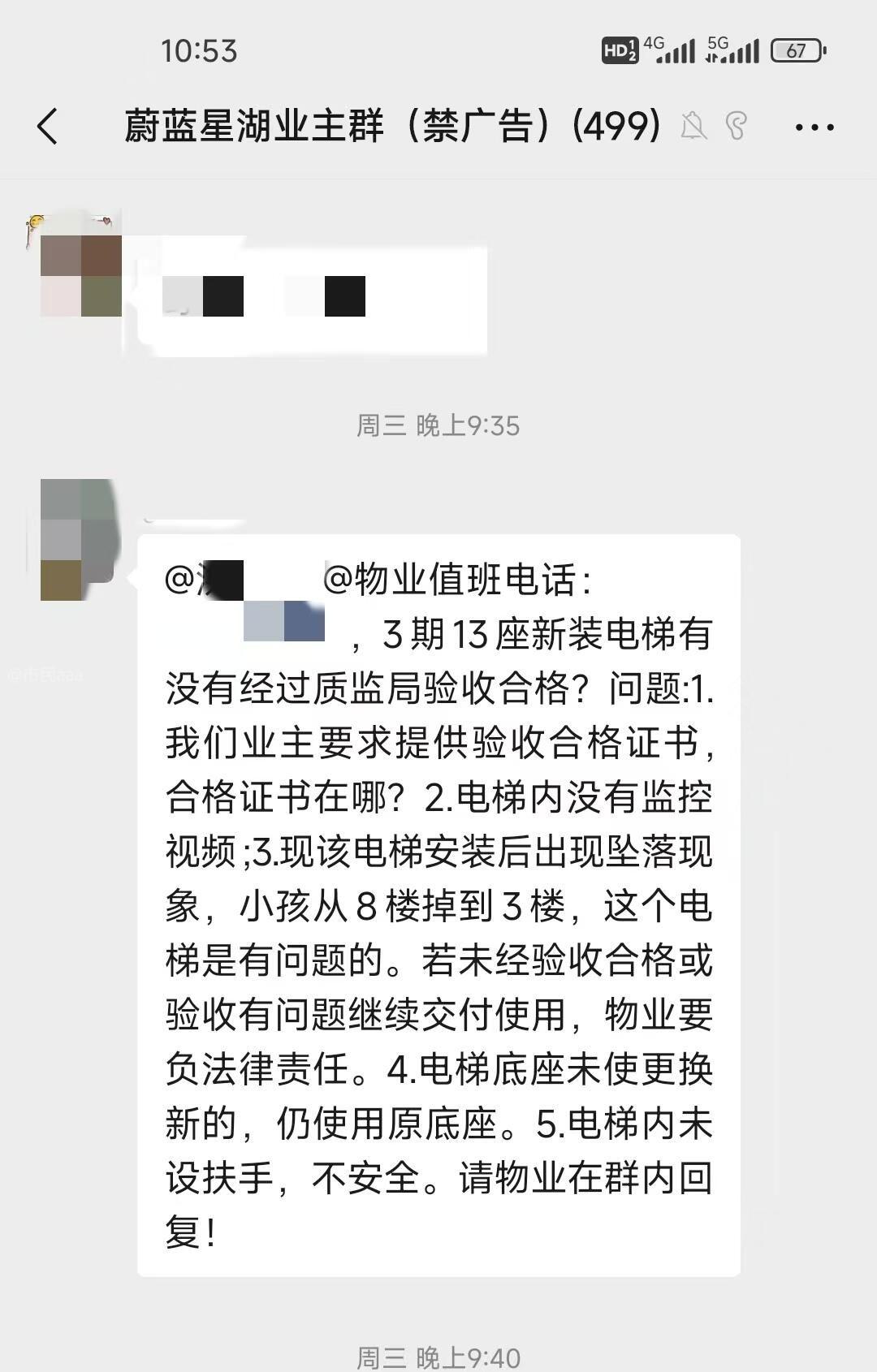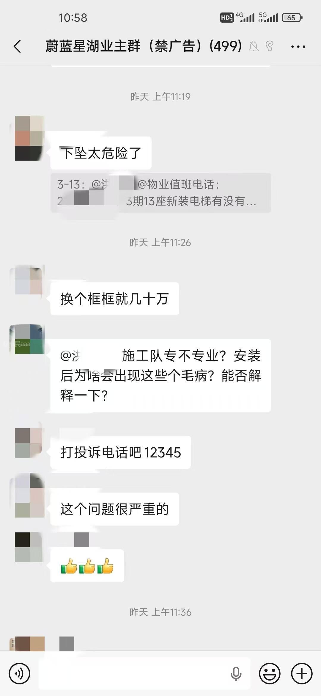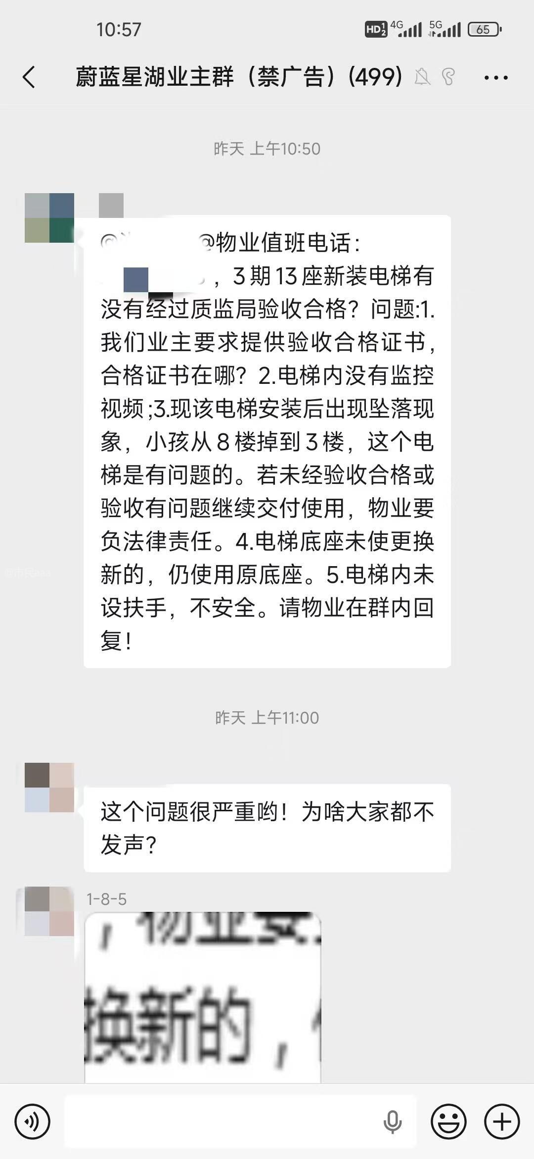 东城蔚蓝星湖物业对于小区业主在更换电梯中提出的安全隐患问题视而不见
