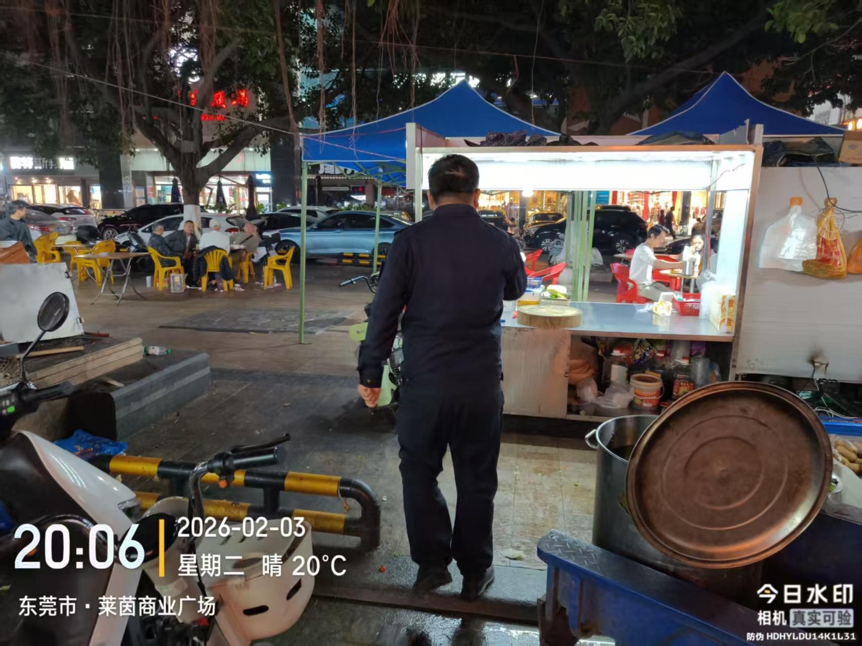 寮步镇碧园路地摊霸占栈道,噪音油烟严重扰民,相关部门履职尽责显担当