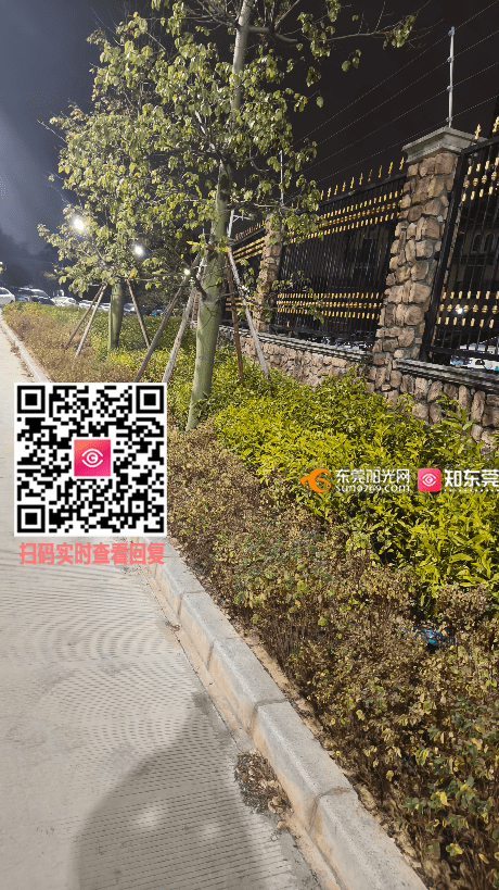 东坑镇东坑大道北233,盈滨半岛小区旁,内河这边,绿化带里 1.市政一直没有浇水,植物都干死了,大路边绿化经常浇水,小道上的,从没浇水 2.地面脏乱,估计绿化完,至今从没打扫过 3.绿化植物里面,很多白色垃圾