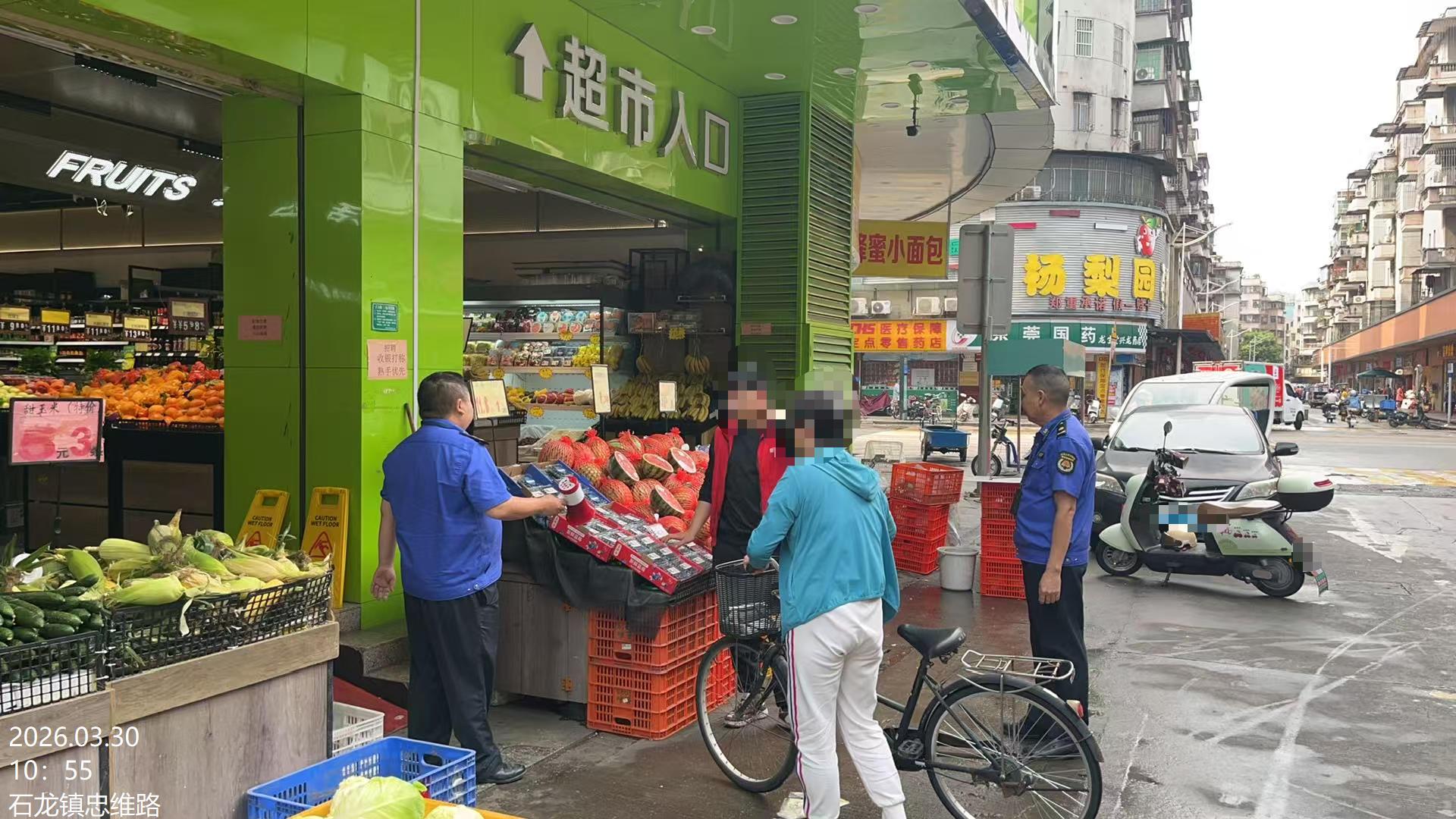 尊敬的市民,您好!您反映的问题已收悉,东莞市城市管理和综合执法局石龙分局经调查核实相关情况,现回复如下:我分局工作人员根据市民反映的情况到达忠维路8-12号喜悦里生鲜超市现场调查。工作人员对该店铺经营人员进行了告知教育,要求必须严格遵守国家有关法律法规,不得超标准排放噪音,以防扰民。经教育,店铺经营人员已即时关停音箱喇叭,并承诺以后会控制音量,防止噪音扰民。接下来,我分局将继续加强巡查力度。感谢您对我们工作的理解和支持!