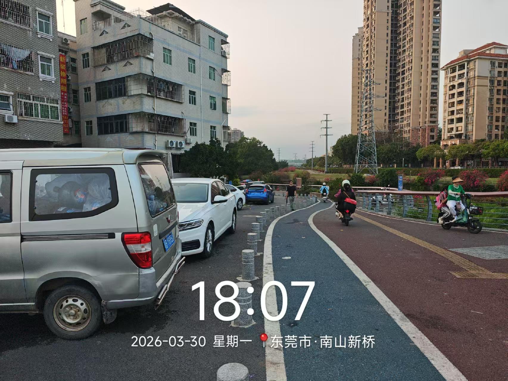 凤岗雁田祥新路 南山新桥 北边 万里碧道入口停满了机动车影响骑行 请在入口加入护栏防止机动车停靠在 碧道入口里面