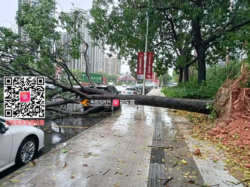 石碣镇中海左岸东宸北侧西侧市政道路树木吹倒,影响通行,请及时处理。