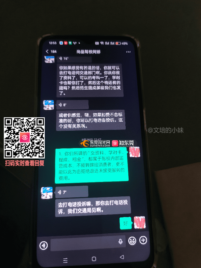 东莞品胜大坪驾校未考科目一乱扣2000元拒不退费异地无法到现场要求线上处理