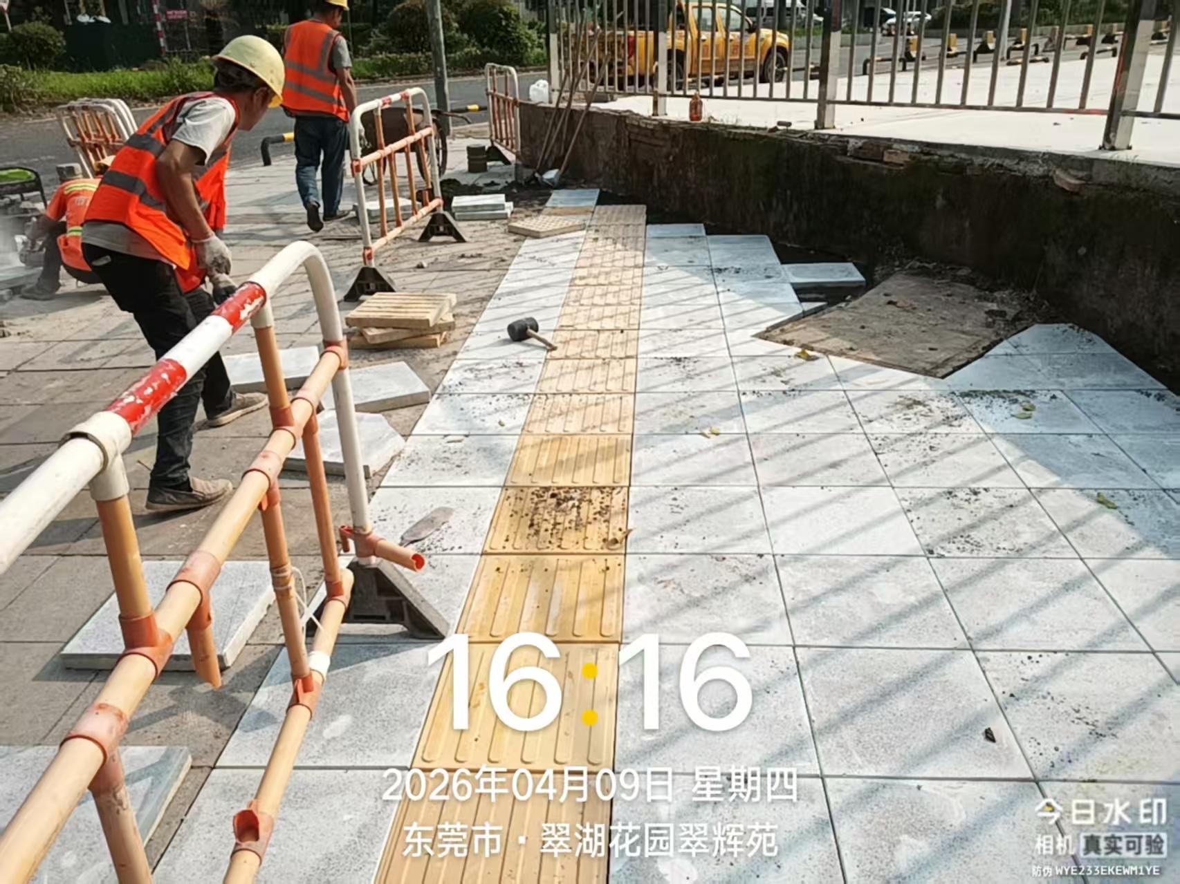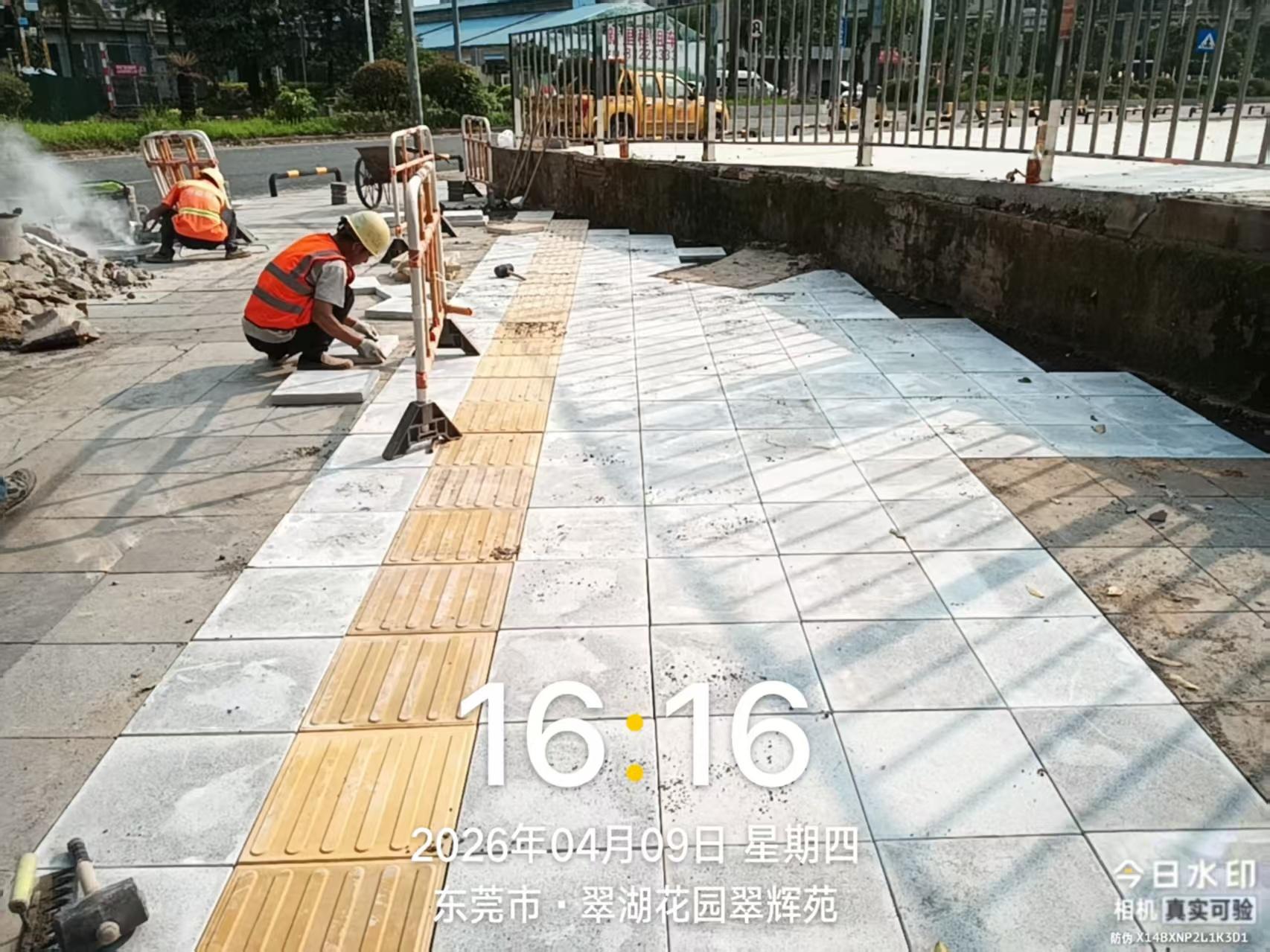 人行道有破损,导致凹凸不平,人行或者车行都有安全风险,希望有关部门修整人行道。地图(东莞市嘉旺水泥批发)附近的环城东路辅路人行道右转处