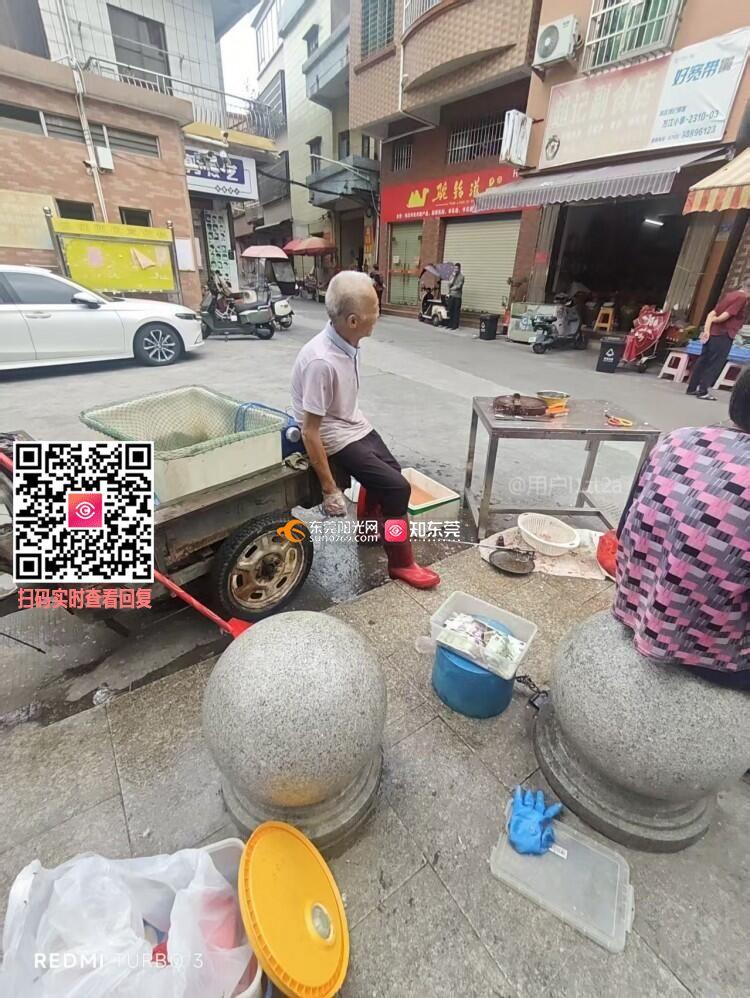 谷涌社区村口居家养老服务中心篮球场处公共厕所边无证经营,乱摆乱卖水产,无人管,杀鱼桌都摆出来了