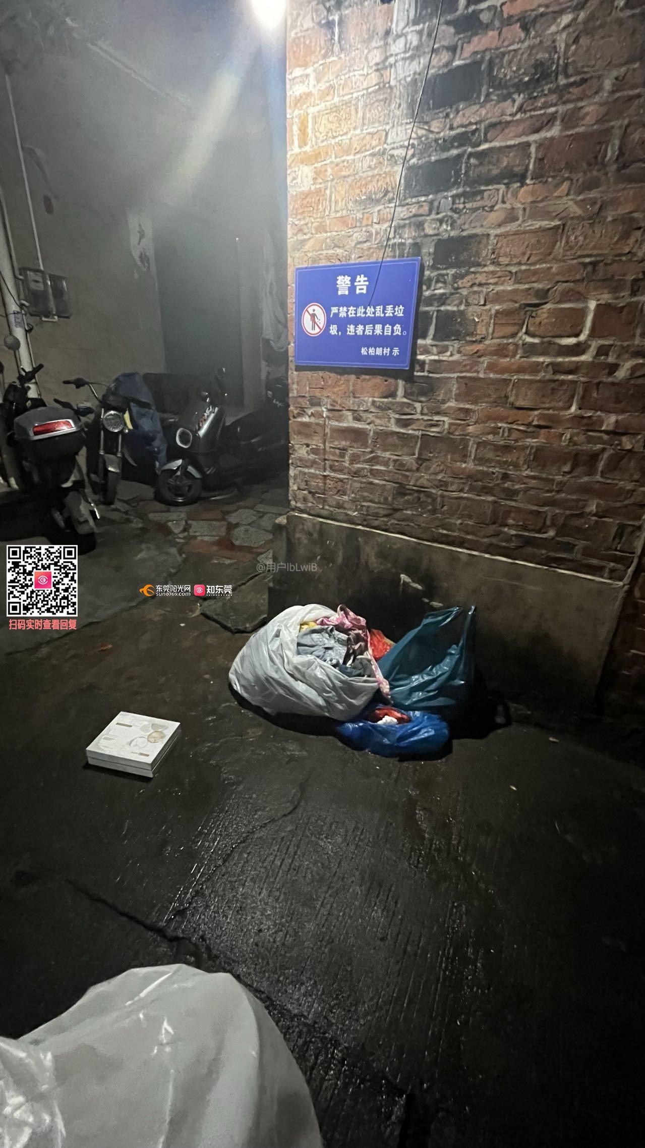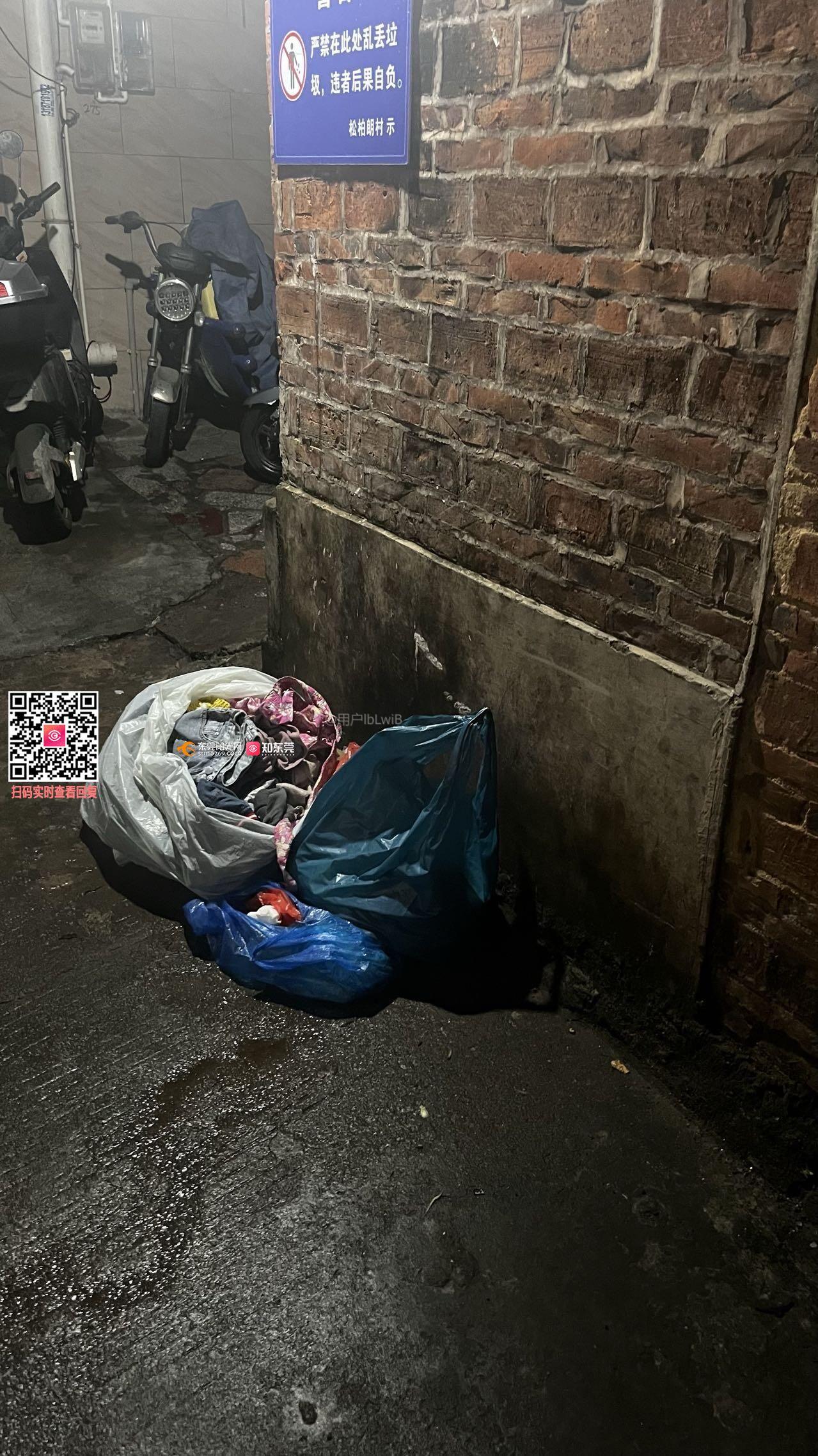 大朗松柏朗村三巷内(旧喜庆堂往前走,至一口井处)路边常年有人乱丢垃圾,前次处理无果,村委会张贴警告牌依旧多人乱丢垃圾,招惹老鼠蟑螂,气味臭气熏天,希望能解决。