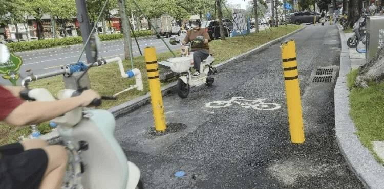 鸿福路口至宏远立交桥非机动车道止车柱相关问题