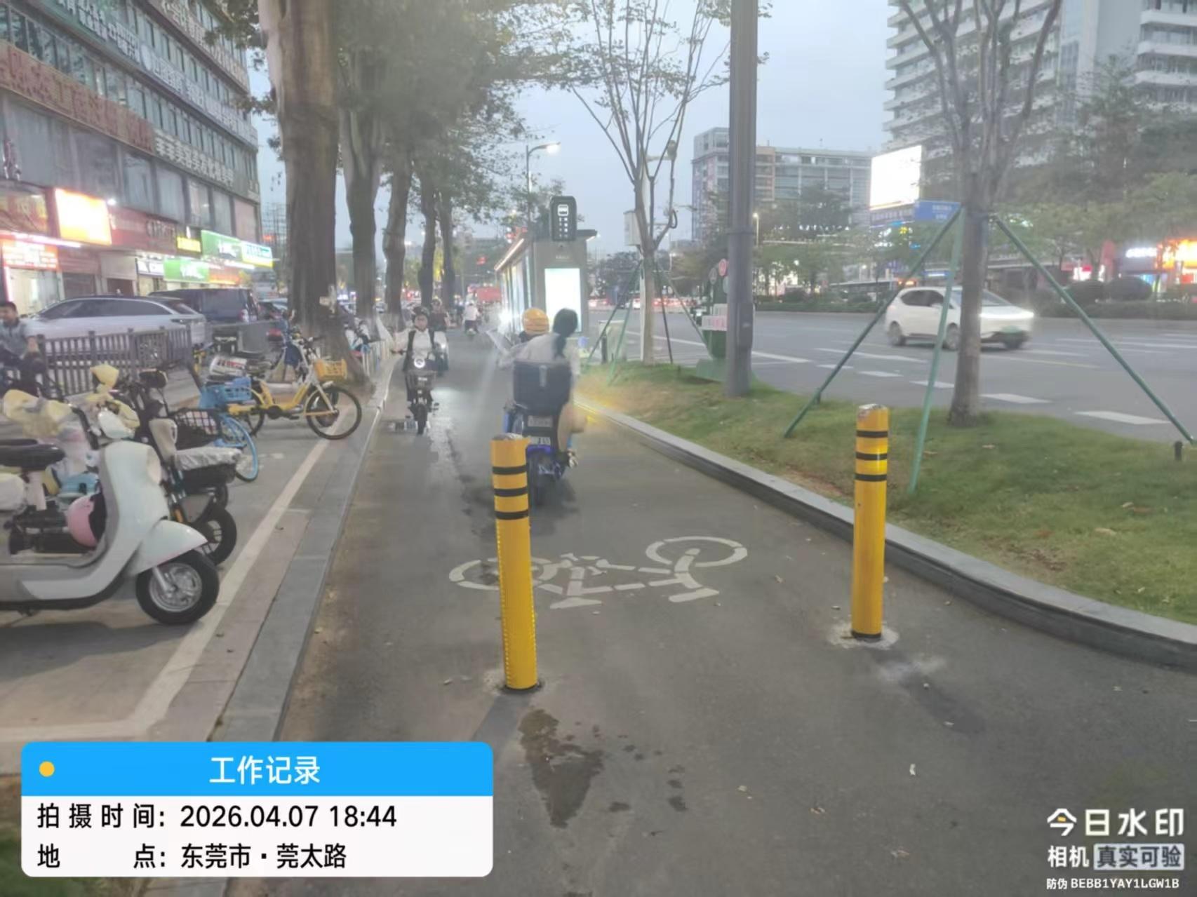 尊敬的市民,您好!您反映的问题已收悉,现回复如下:收到反映的情况后,我们于2026-4-7 18:45电话与您取得联系,与您确认了具体地址并于2026-4-7 19:05 对诉求进行现场核查办理。经查,您所反映鸿福路口至宏远立交桥路段的止车柱设置不合理,经现场测量,止车柱的间距宽度符合国家规范要求,不影响非机动车正常通行。高峰期不可避免存在会车需避让的情况,减速慢行,相互礼让,确保安全有序通行。以上情况,我分局已向市民解析说明。您所提的问题已经基本解决。如有疑问,请联系南城城管分局,联系电话:0769-22900882。感谢您对我们工作的理解和支持!