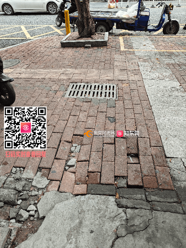 大朗镇松佛路62号重庆烤活鱼巷子口,巷子口路面被里面园区有个小象超市配送骑电动车碾压凹陷,小象配送骑电动车大门不走,每天走这个巷子速度超快进出,不减速,不注意巷子里行人及公寓门口进出人员安全问题,配重一天几百次碾压路面,建议及时修复,建议他们配送走大门安全,希望路面及时修复。