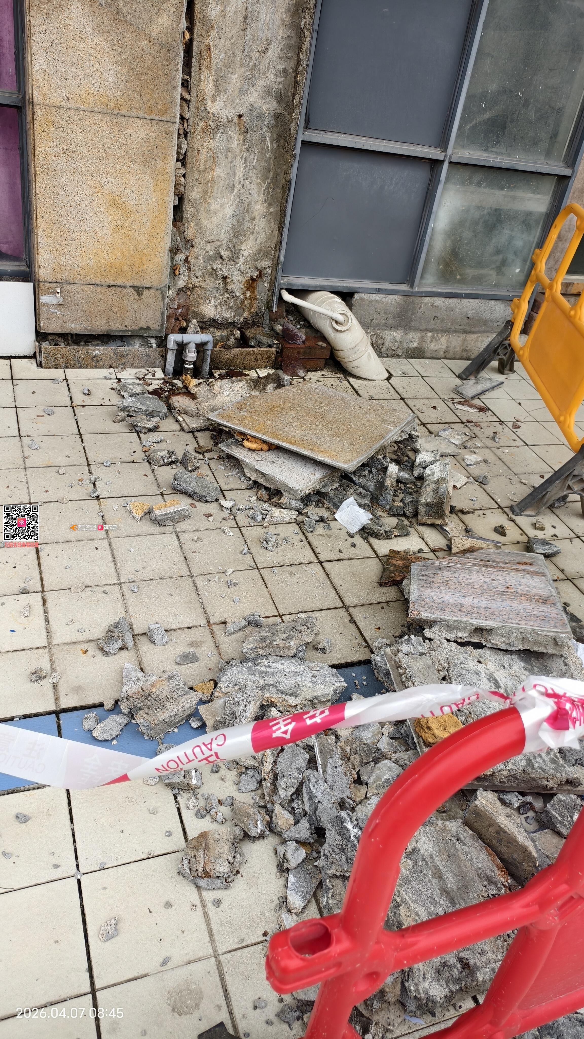 东莞南城都市阳光住宅楼一楼地面塌陷
