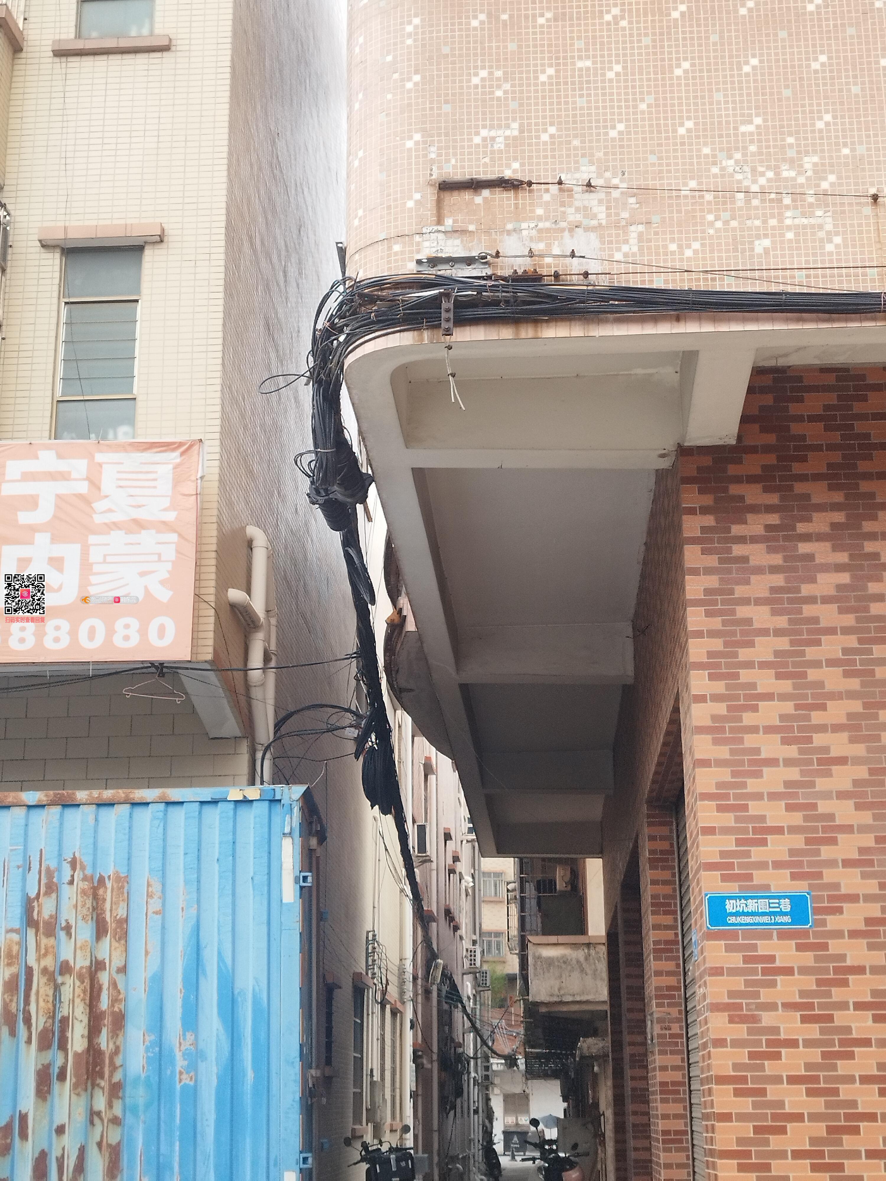 房屋周圍拉满很多不明电线.引致墙体裂开漏水产生危险.为什么多年前都说整治旧围乱拉电线,但都沒人整治.现在多个部门投诉都沒人检查受理.只派人过来说一声不能移走就走了.